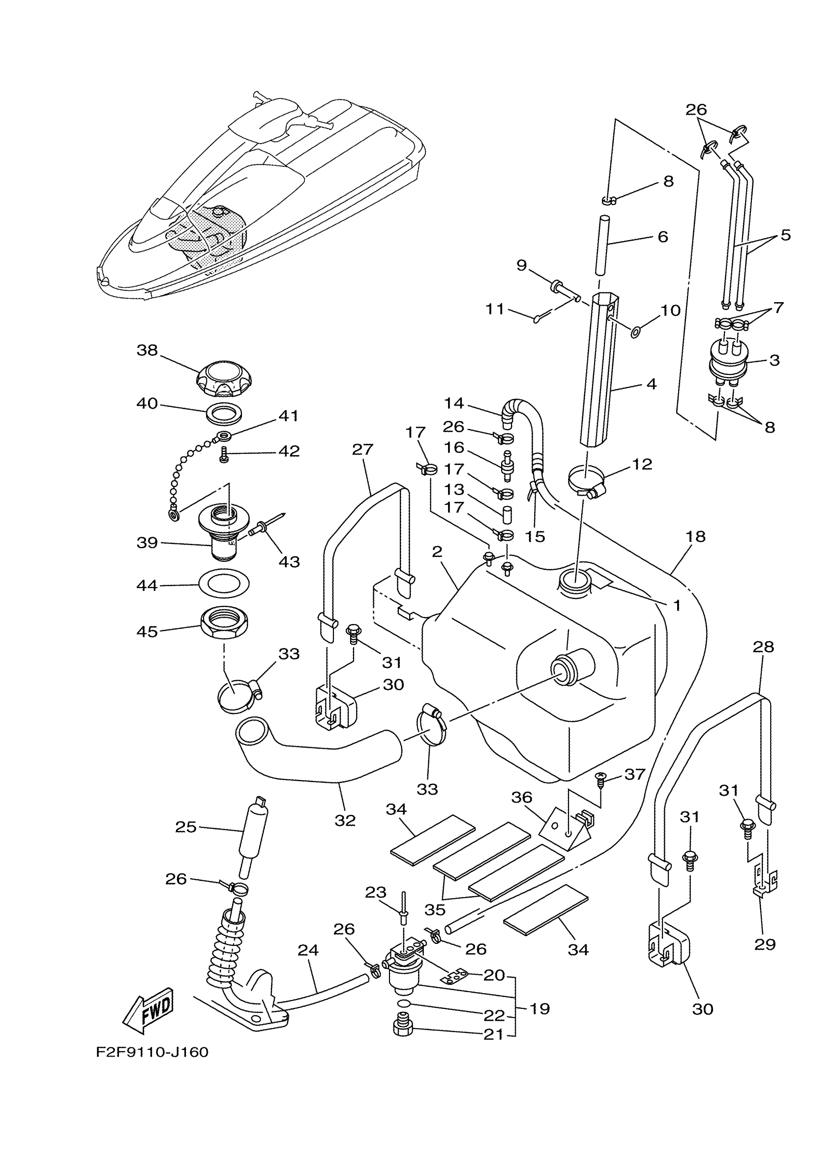 Yamaha SJ700BT (SUPER JET) F4DE 2018 FUEL TANK Diagram
