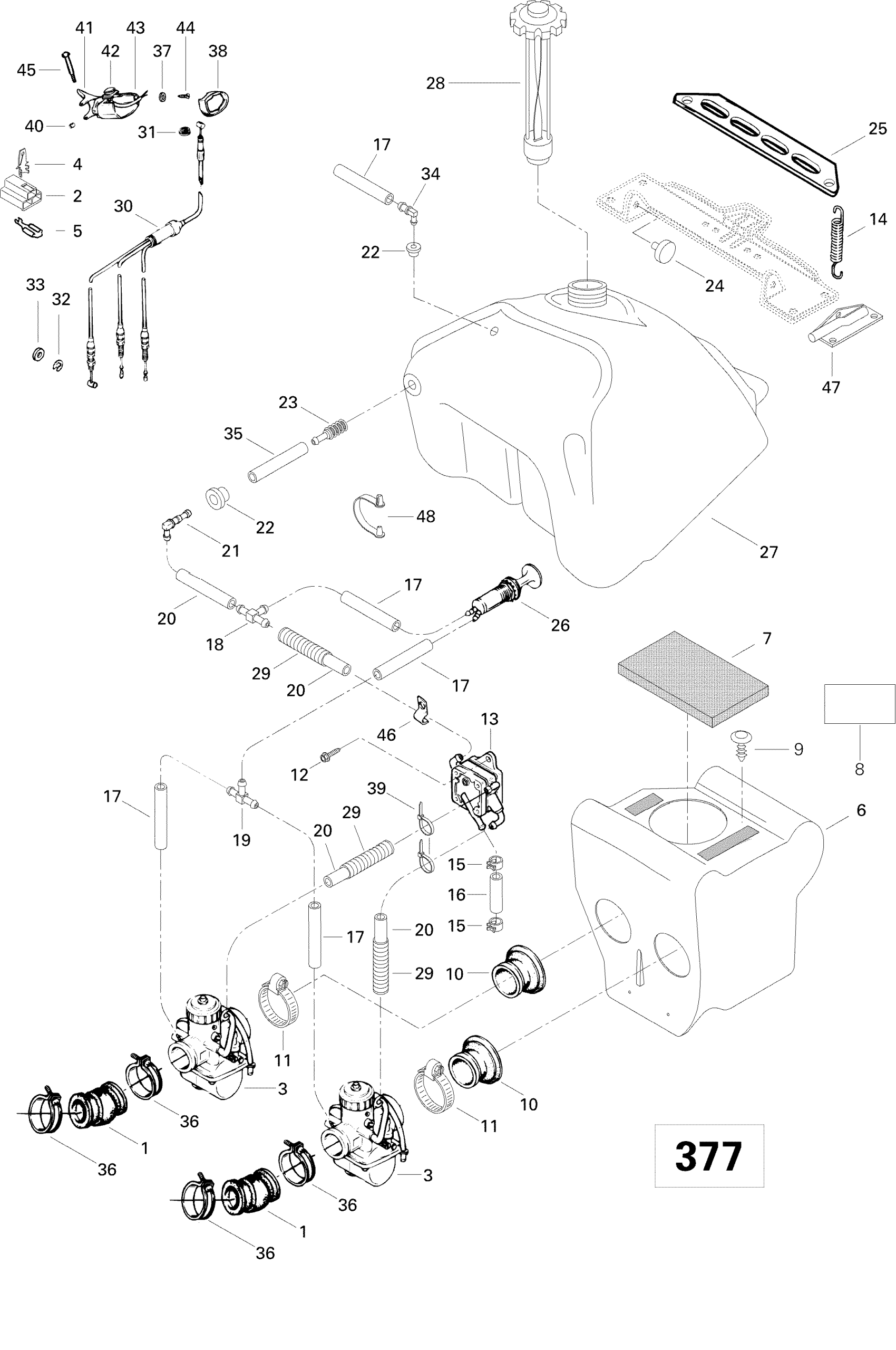 Ski-Doo Skandic 380, 1996 Fuel System 377 Diagram