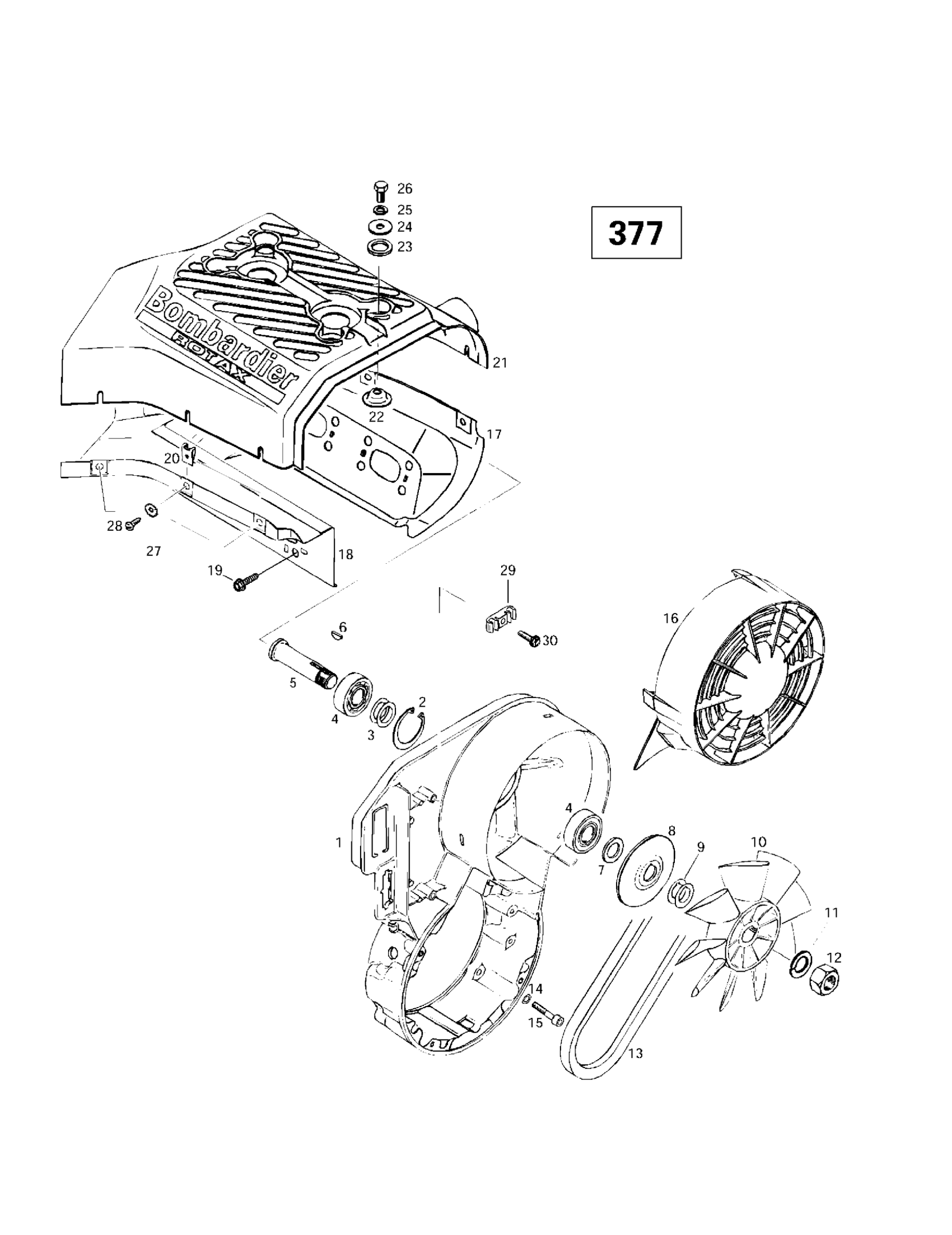 Ski-Doo Skandic 380/500, 1997 Cooling System Fan (377) Diagram
