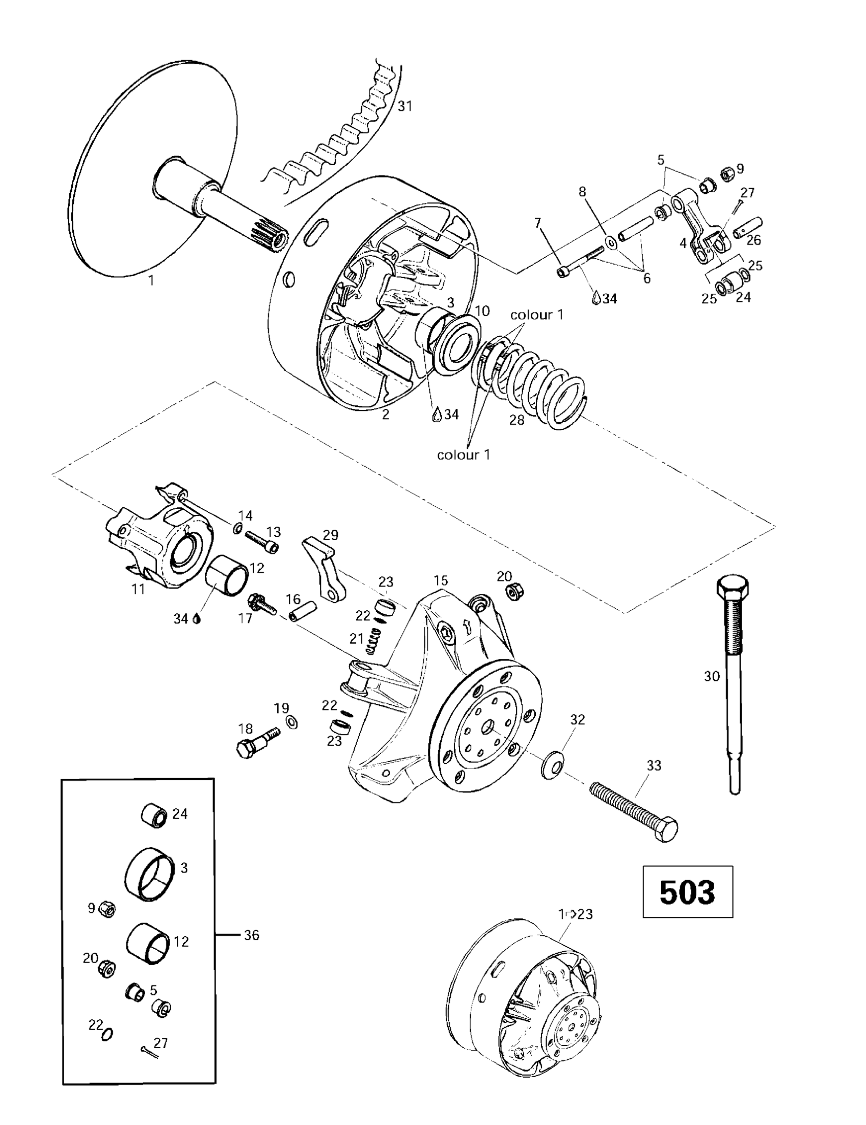 Ski-Doo Skandic 380/500, 1997 Drive Pulley (503) Diagram