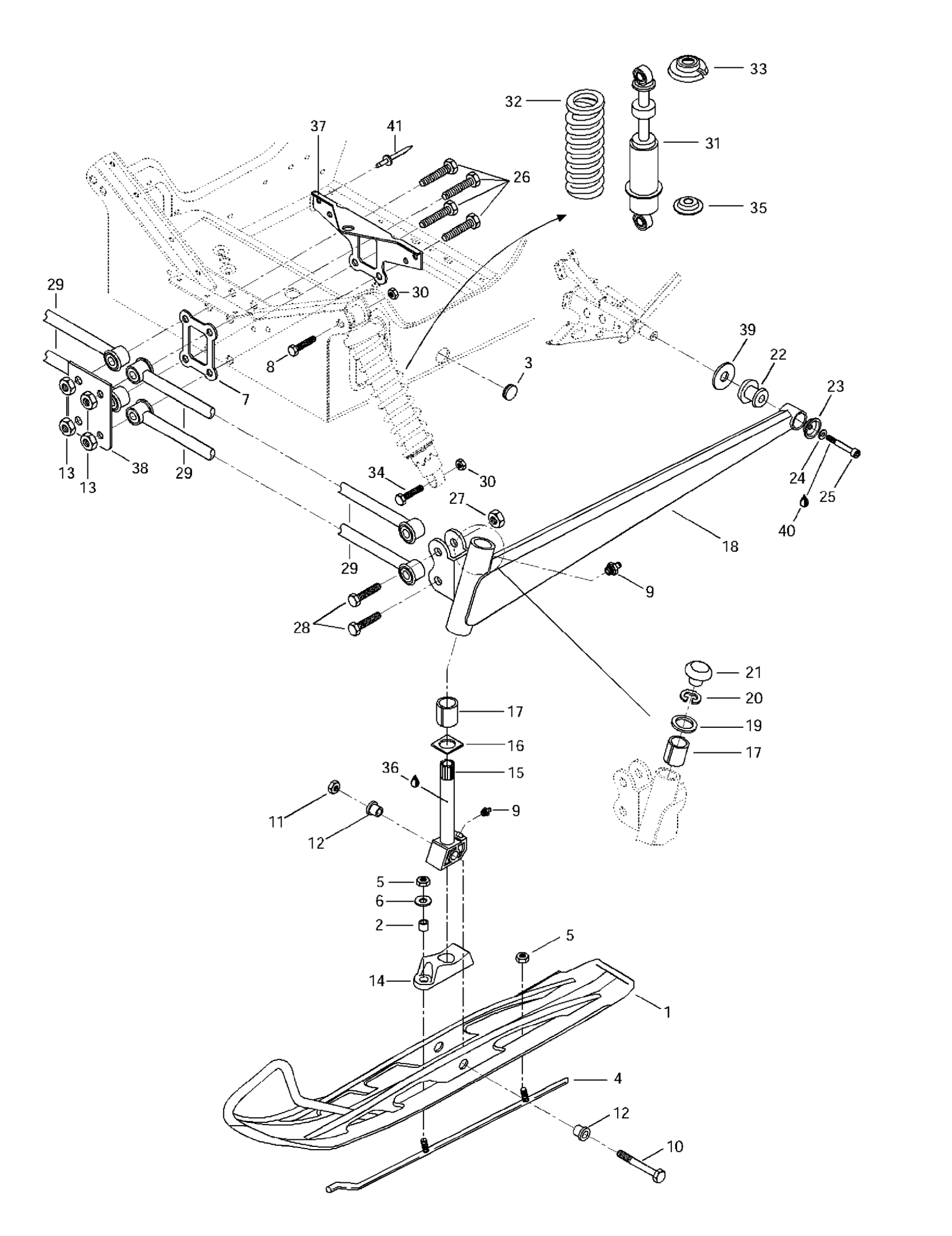Ski-Doo Skandic 380/500, 1997 Front Suspension And Ski Diagram