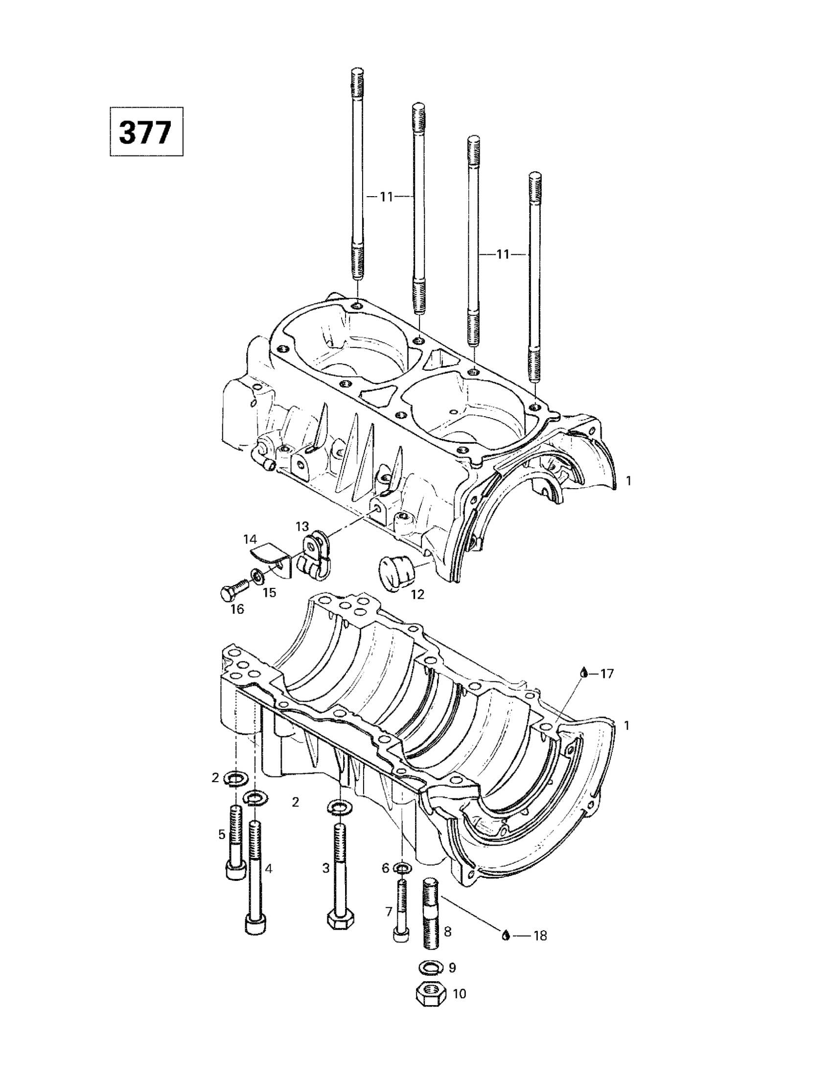 Ski-Doo Skandic 380/500, 1998 Crankcase (377) Diagram