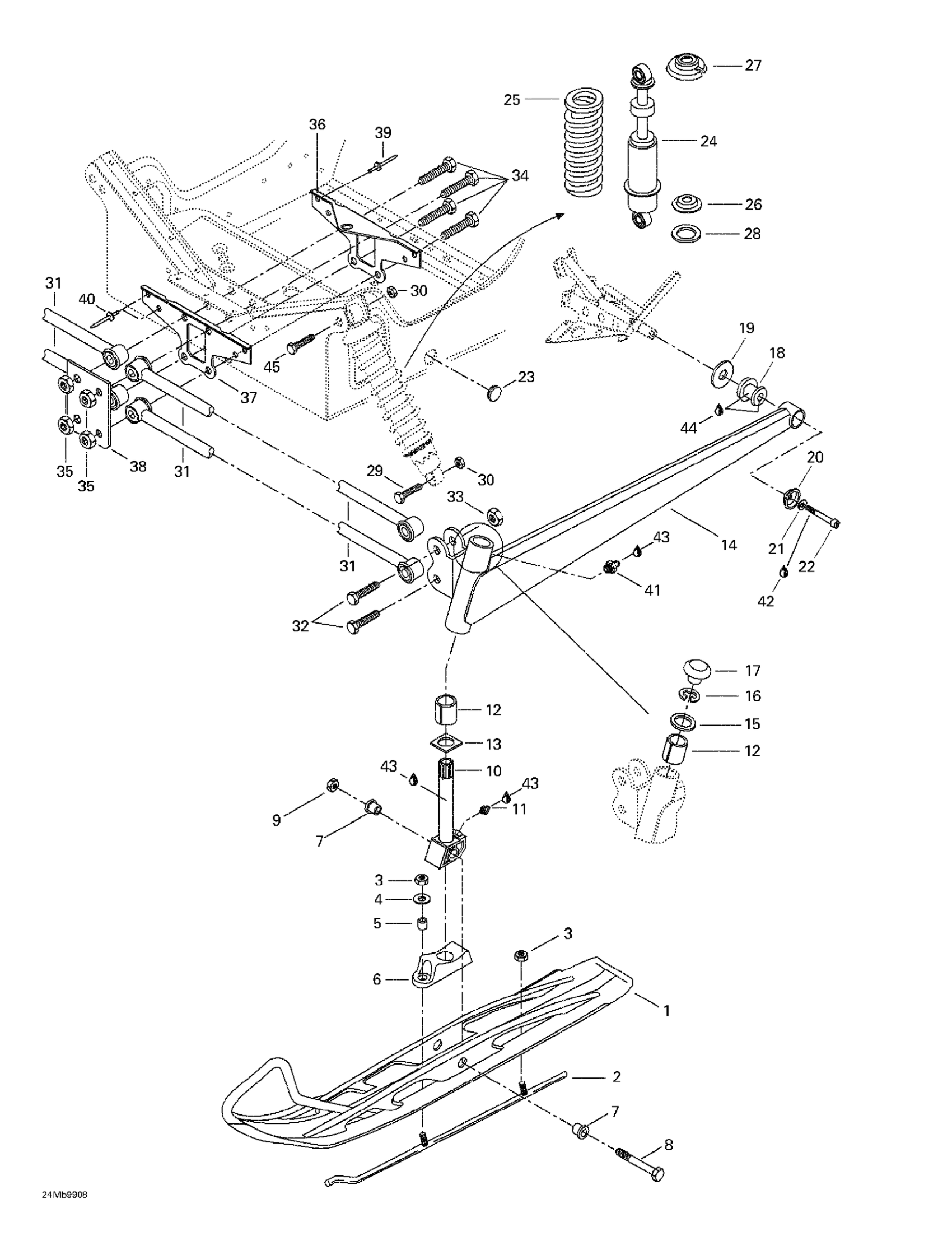 Ski-Doo Skandic 380/500, 1999 Front Suspension And Ski Diagram