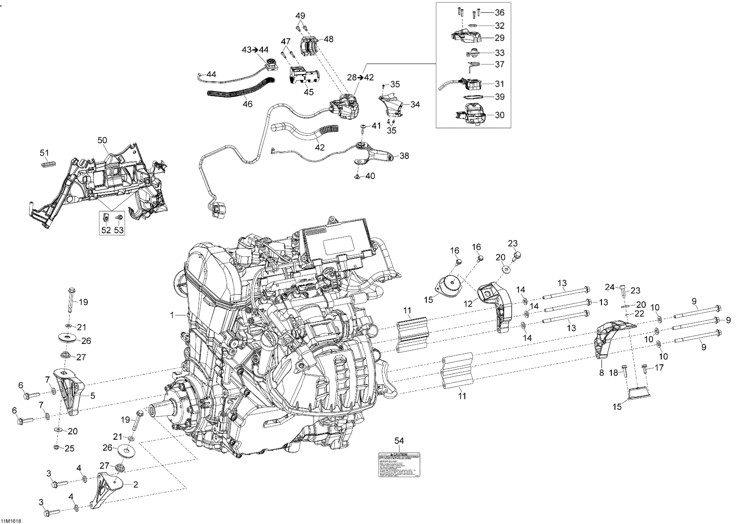 Ski-Doo SKANDIC - 4-STROKE, 2016 01- Engine And Engine Support Diagram
