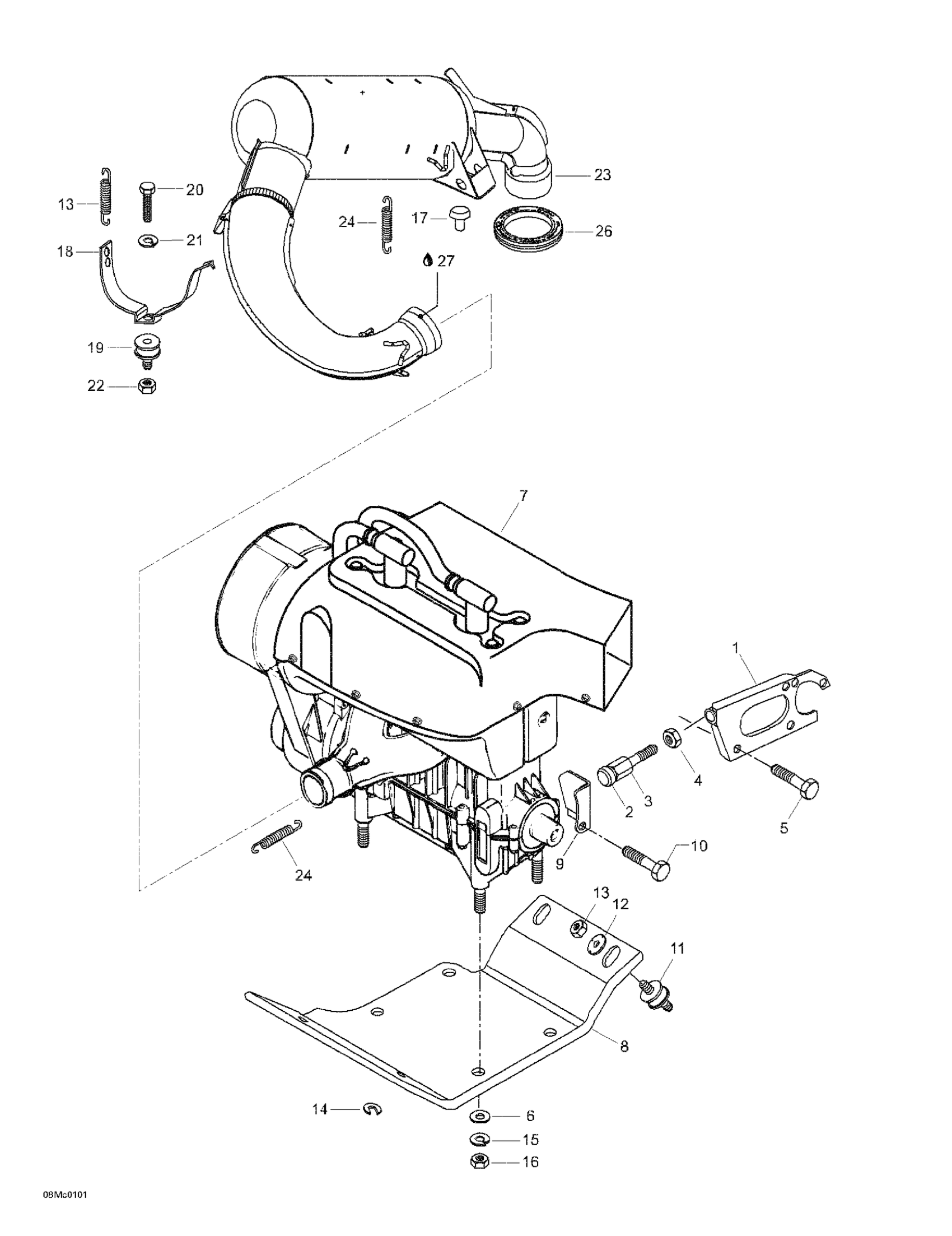 Ski-Doo Skandic 440F, 2001 Engine Support And Muffler Diagram