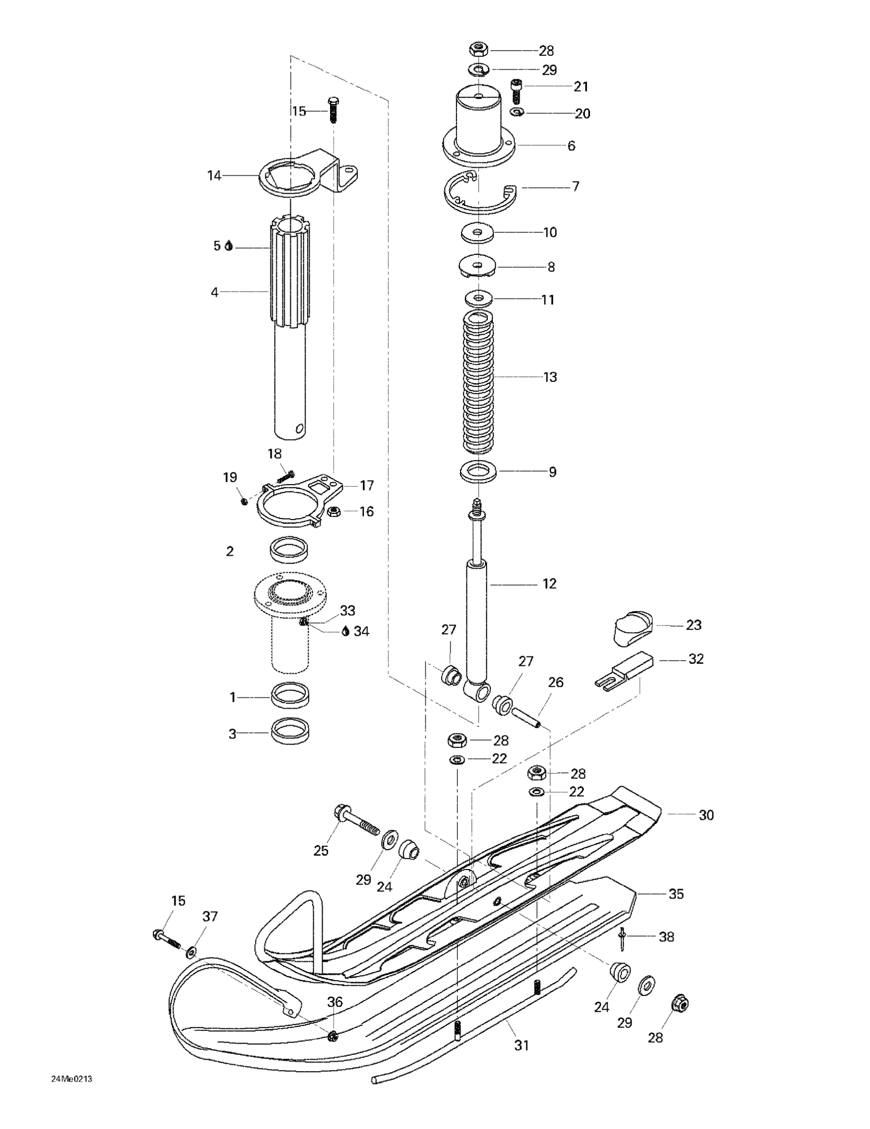 Ski-Doo Skandic 500/600, 2002 Front Suspension And Ski Diagram