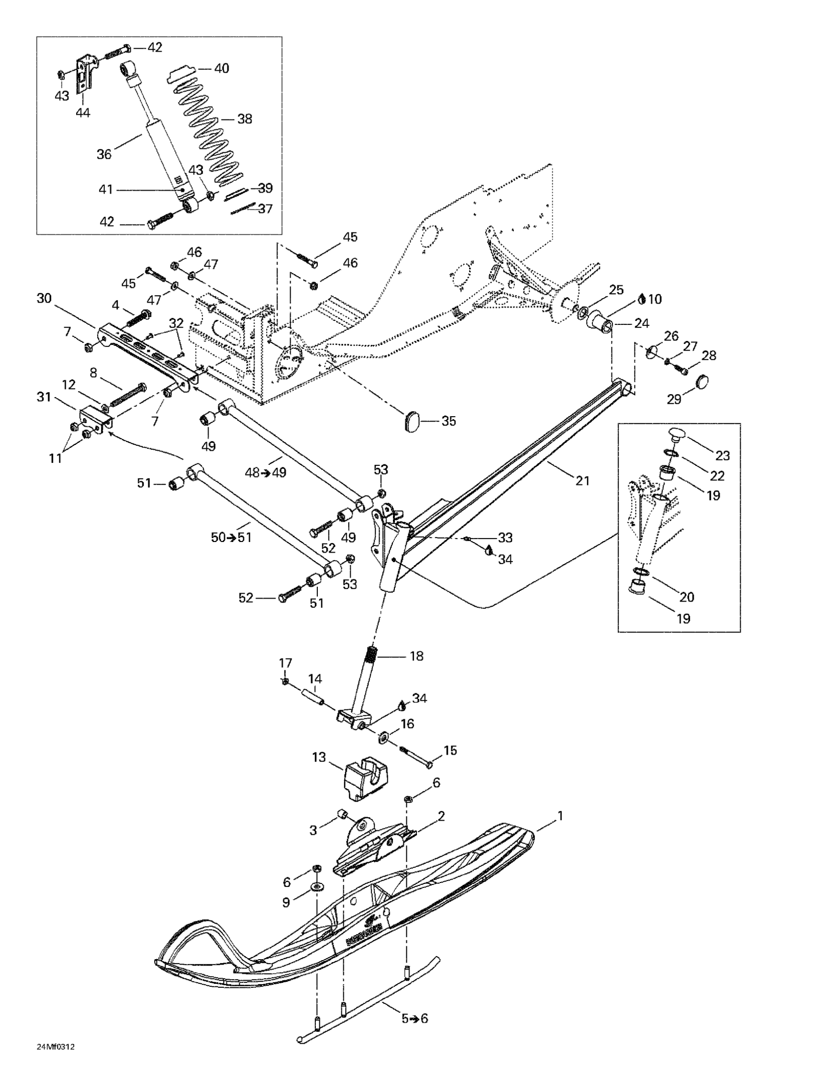 Ski-Doo Skandic 500F, 2003 Front Suspension And Ski Diagram