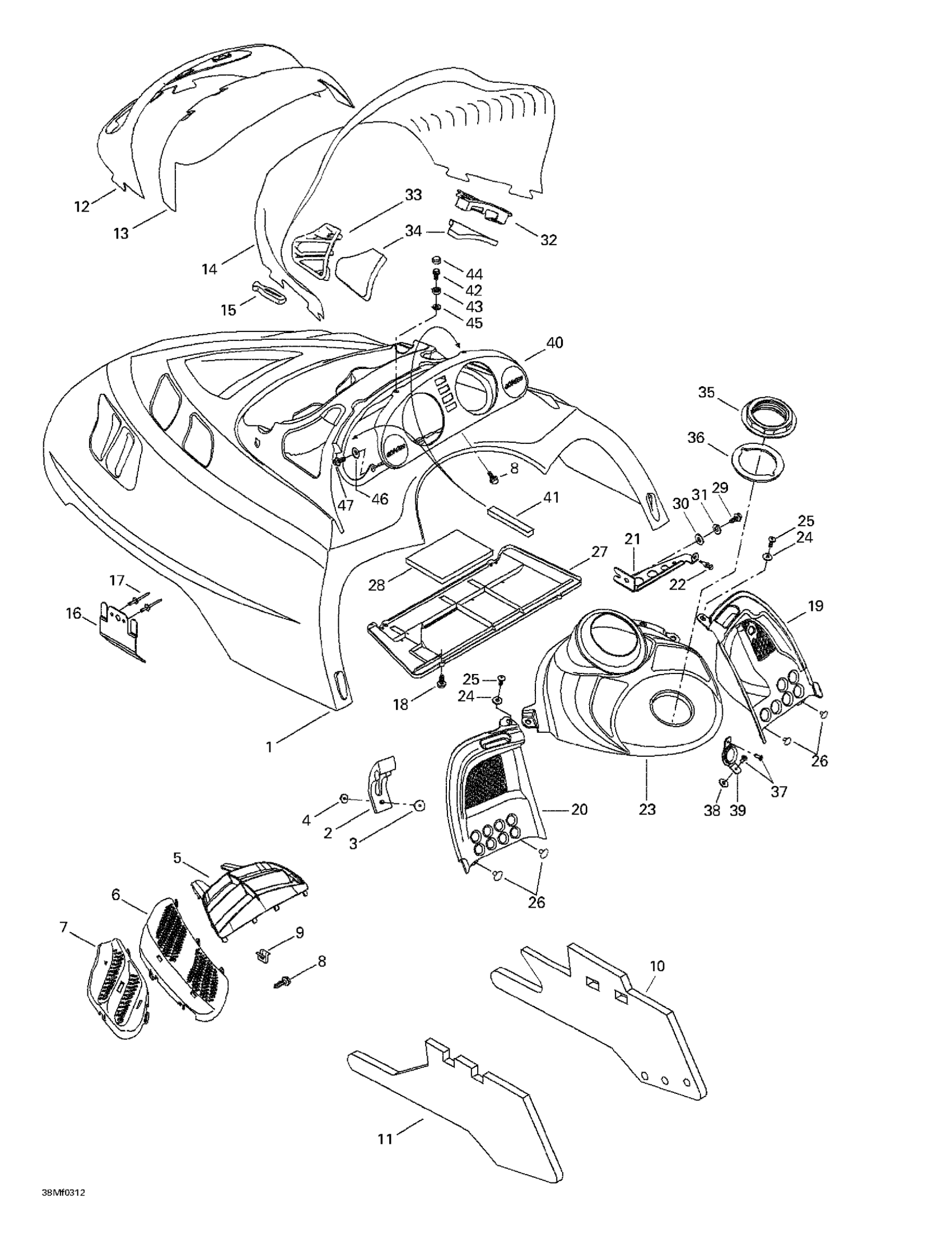 Ski-Doo Skandic 500F, 2003 Cab, Console Diagram