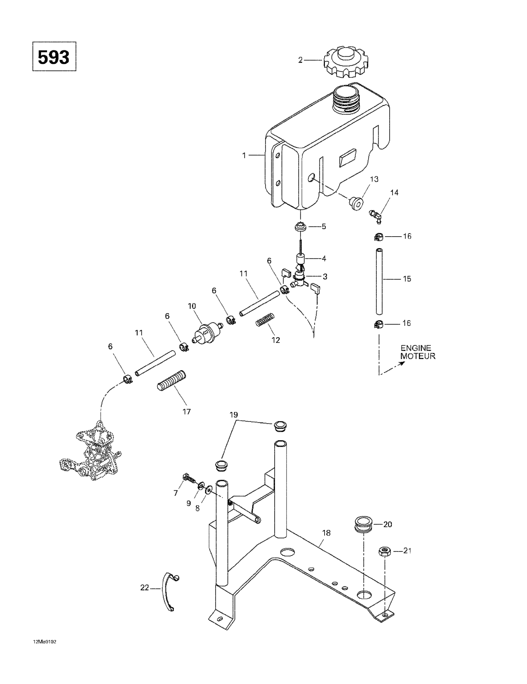 Ski-Doo Skandic 500F/600, 2001 Oil Tank And Support (593) Diagram