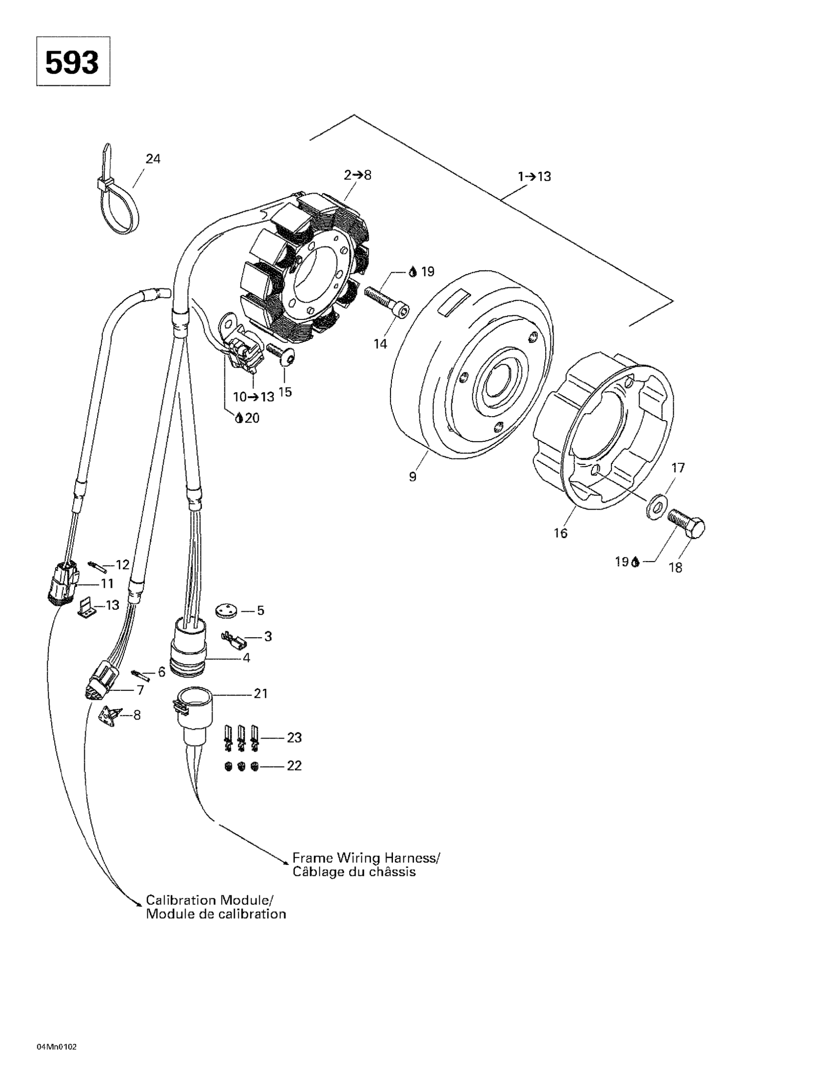 Ski-Doo Skandic 500F/600, 2001 Magneto (12V, 290W) (593) Diagram