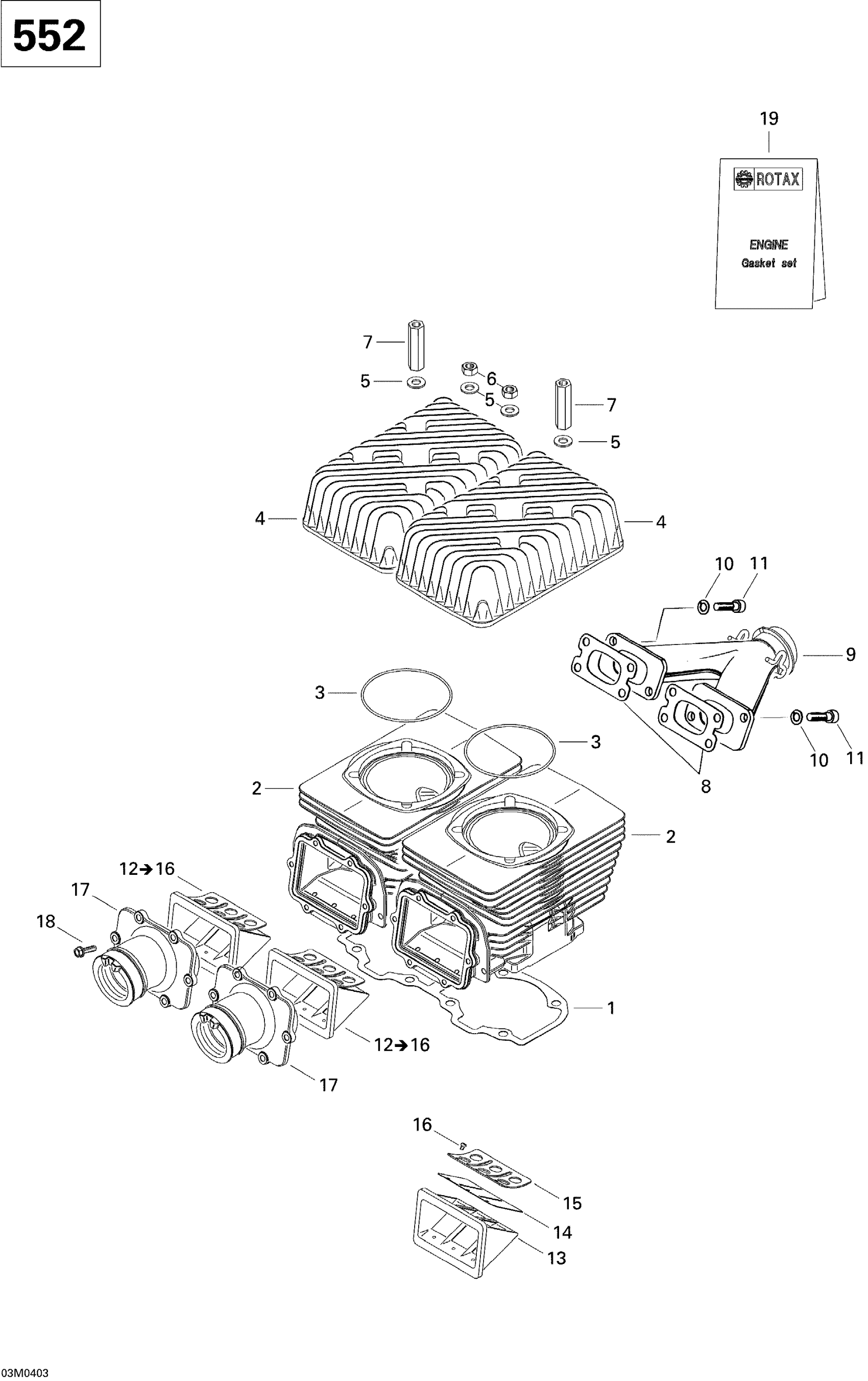 Ski-Doo Skandic 550F, 2004 Cylinder, Exhaust Manifold Diagram