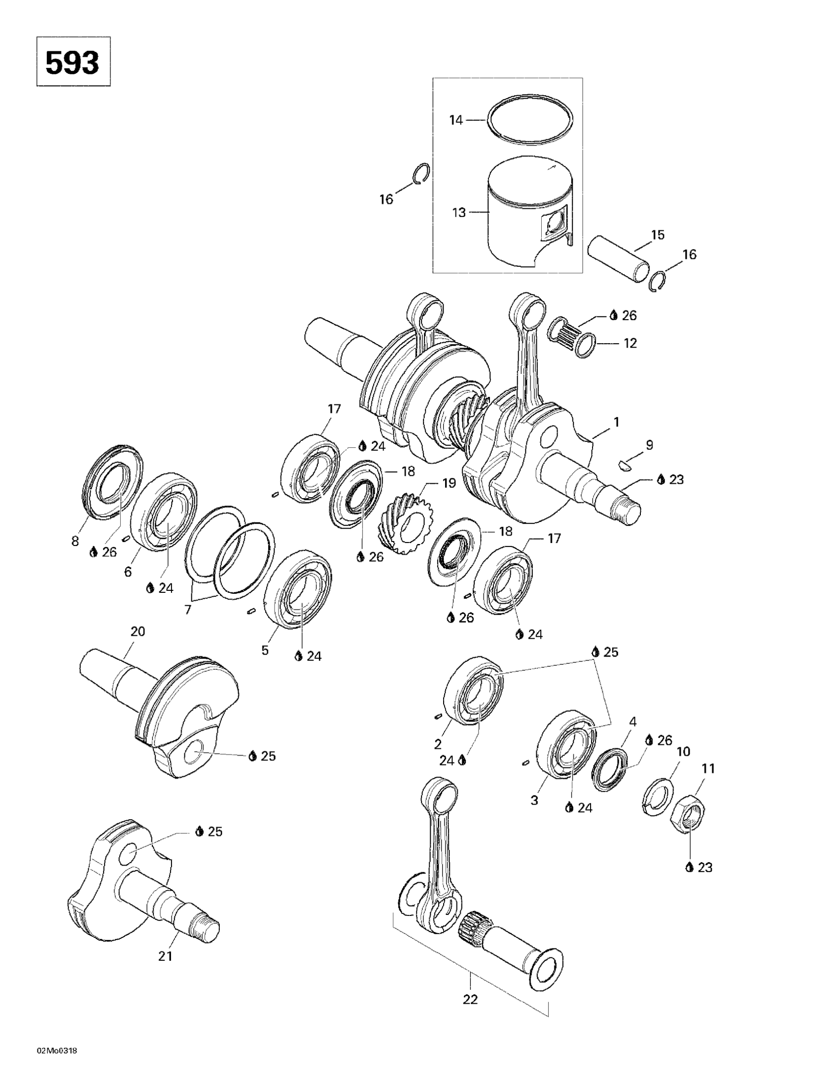 Ski-Doo Skandic 600, 2003 Crankshaft And Pistons (593) Diagram