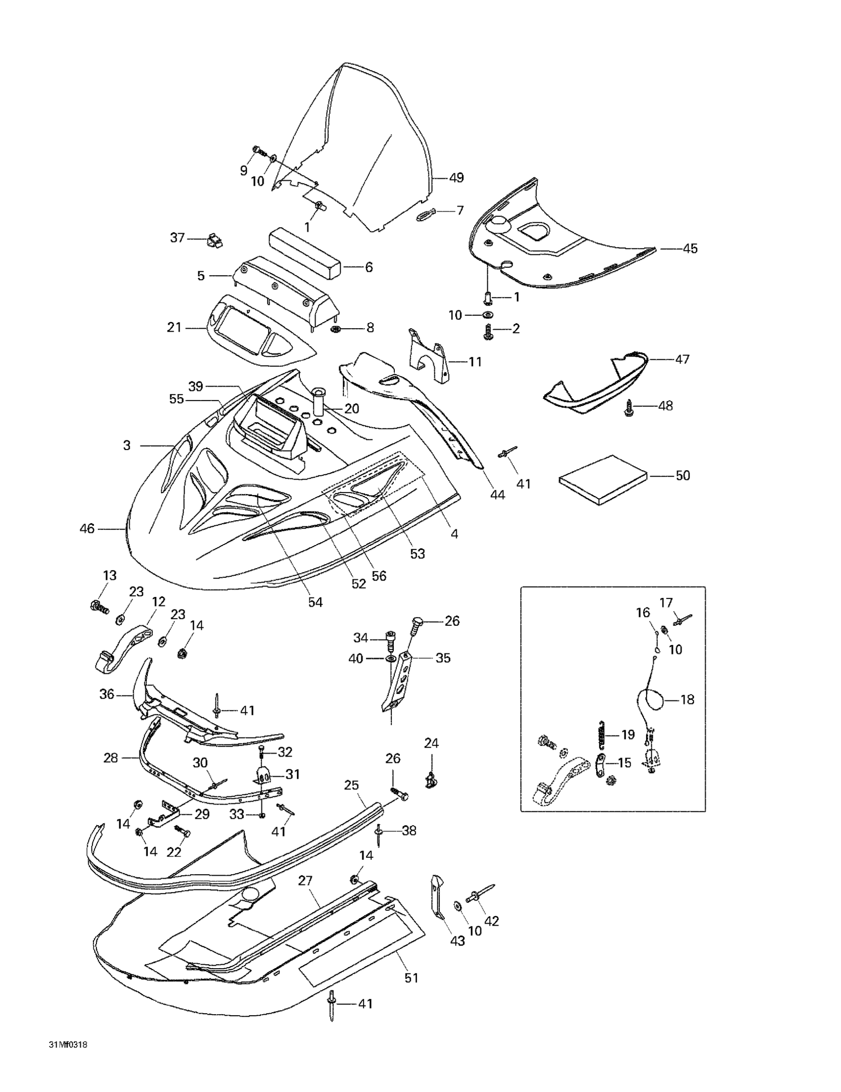 Ski-Doo Skandic 600, 2003 Cab, Console, Seat 2 Diagram