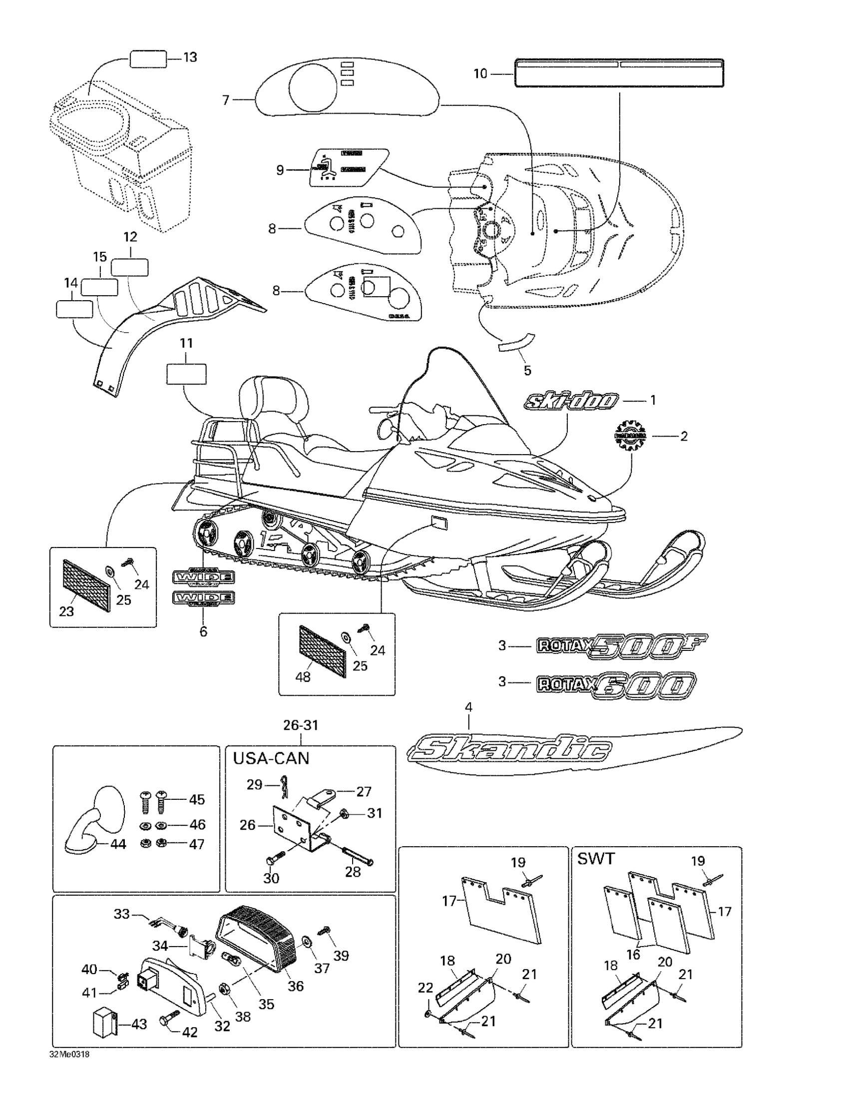 Ski-Doo Skandic 600, 2003 Decals And Accessories Diagram