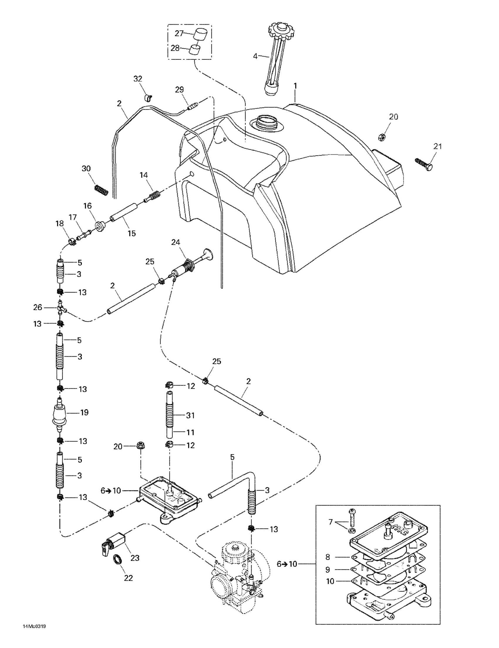 Ski-Doo Skandic LT 440F, 2003 Fuel System Diagram