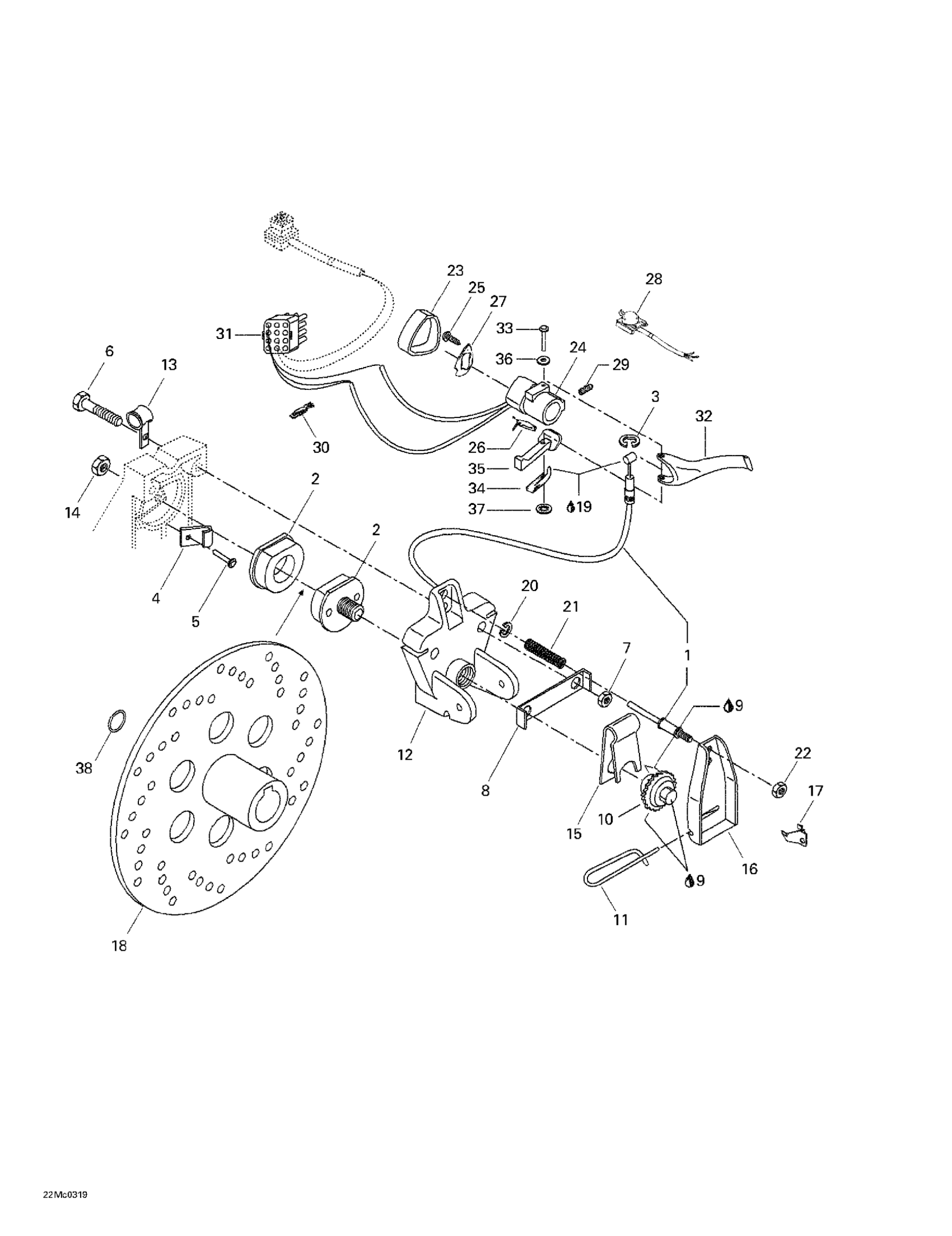 Ski-Doo Skandic LT 440F, 2003 Hydraulic Brake And Belt Guard Diagram