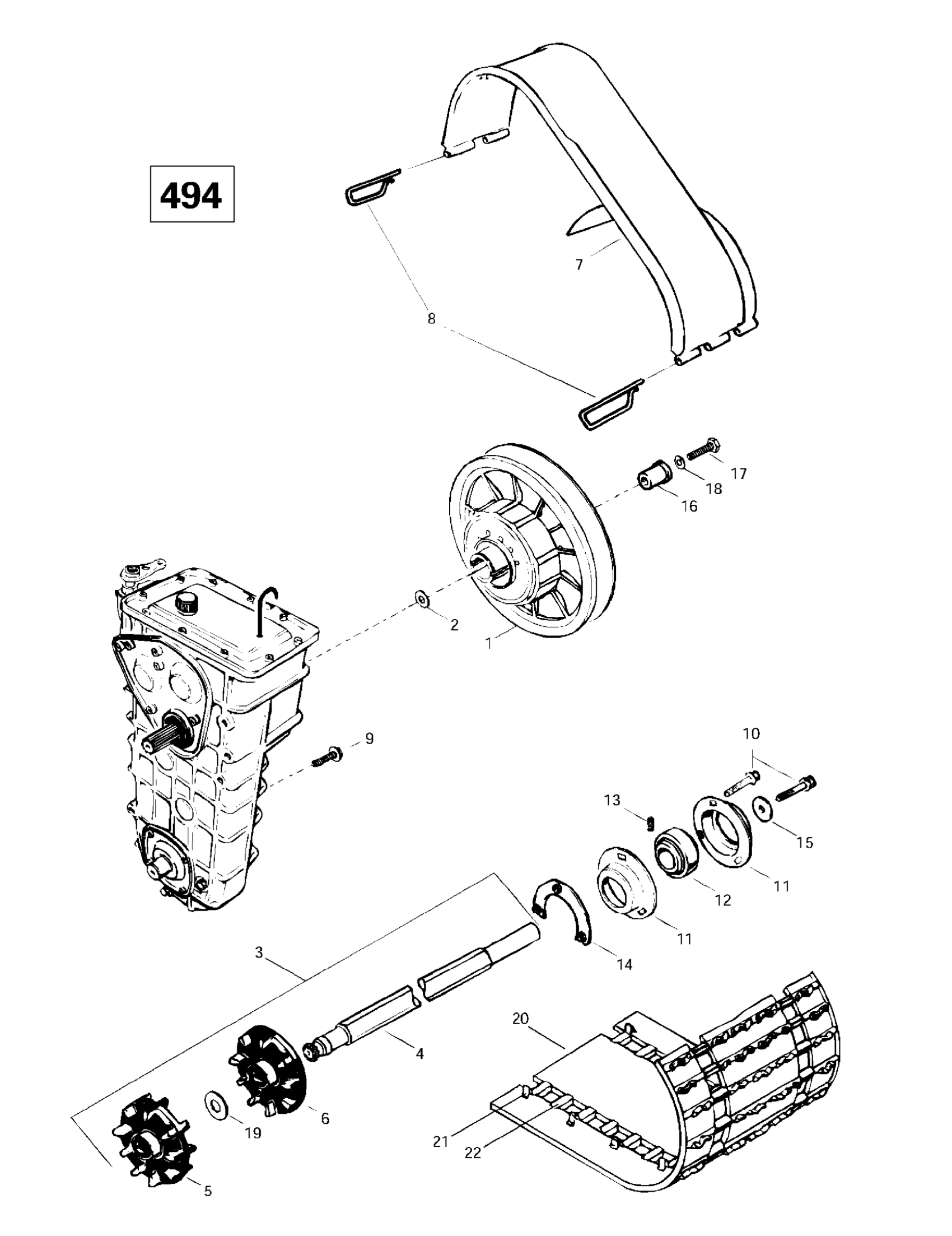 Ski-Doo Skandic Super Wide Track, 1997 Drive Axle, Track And Belt Guard (494) Diagram