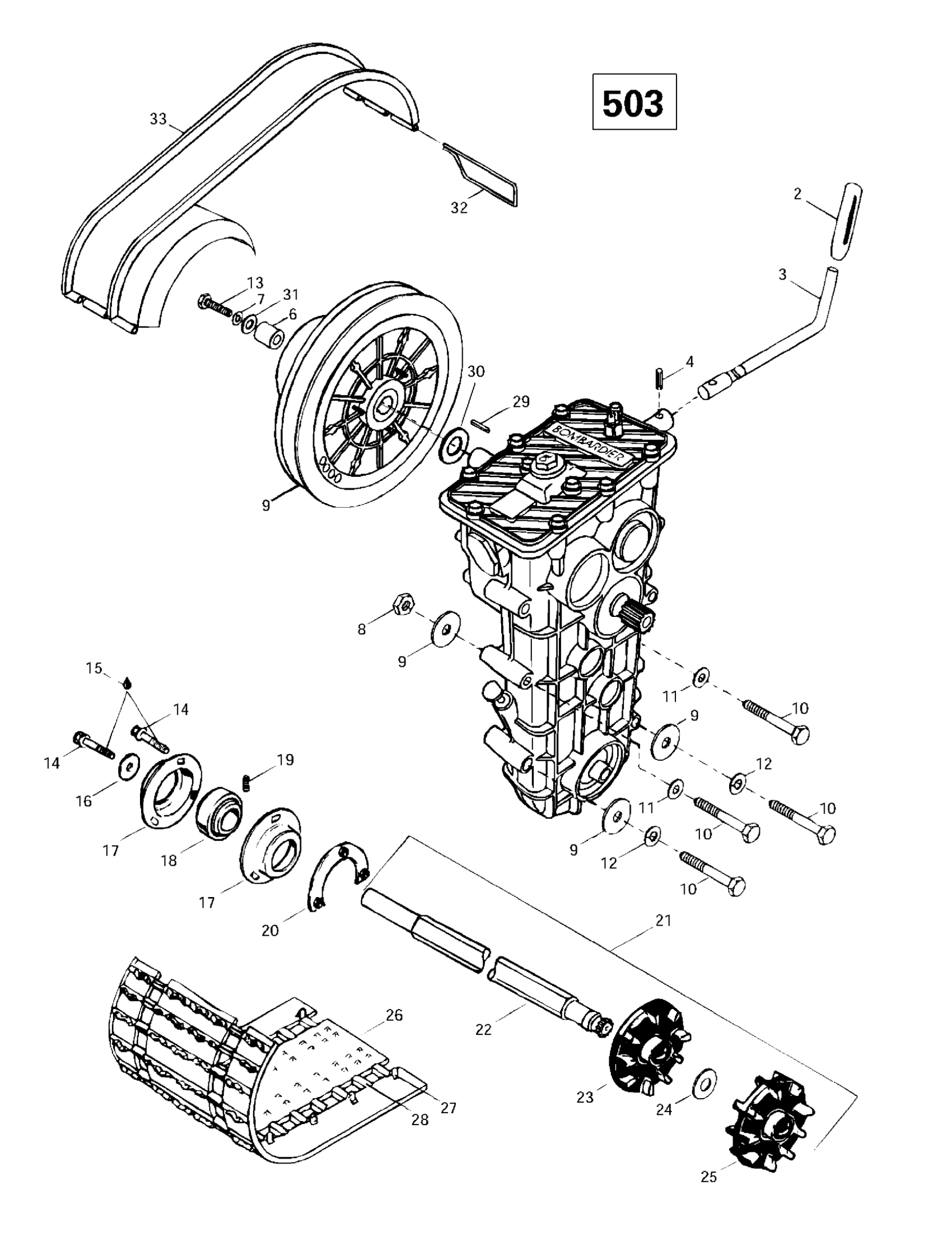 Ski-Doo Skandic Super Wide Track, 1997 Drive Axle, Track And Belt Guard (503) Diagram