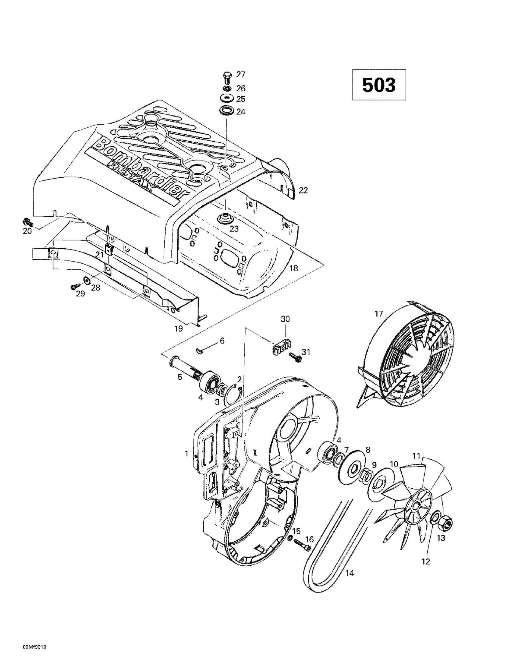 Ski-Doo Skandic Super Wide Track, 1999 Cooling System Fan (503) Diagram