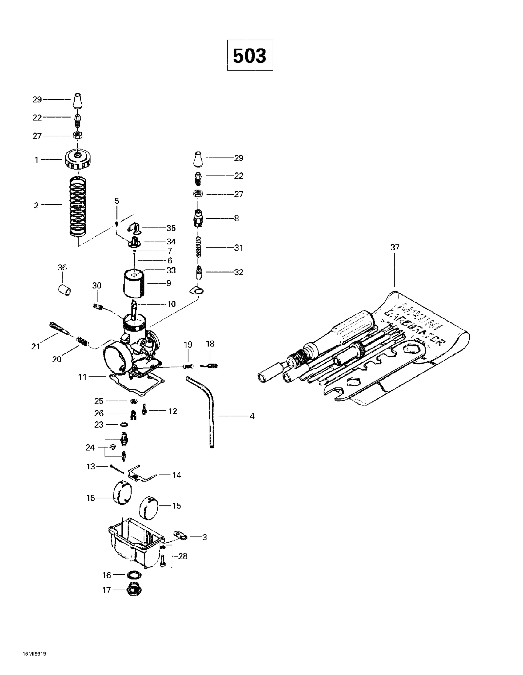 Ski-Doo Skandic Super Wide Track, 1999 Carburetors (503) Diagram