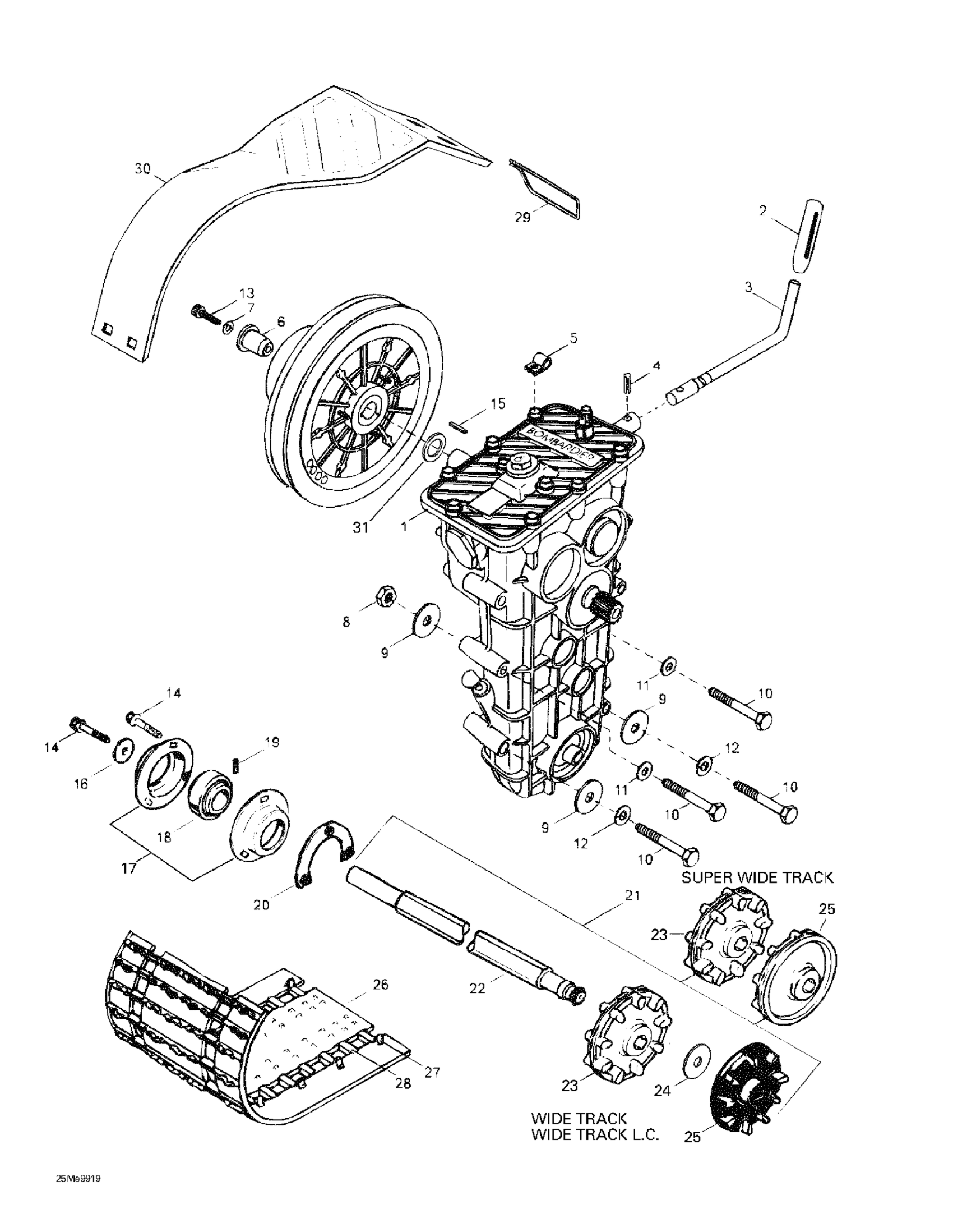 Ski-Doo Skandic Super Wide Track, 1999 Drive Axle, Track And Belt Guard Diagram