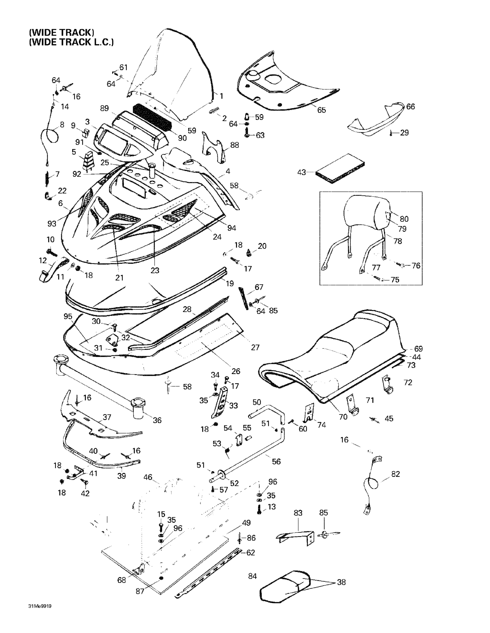 Ski-Doo Skandic Super Wide Track, 1999 Cab, Console, Seat Diagram