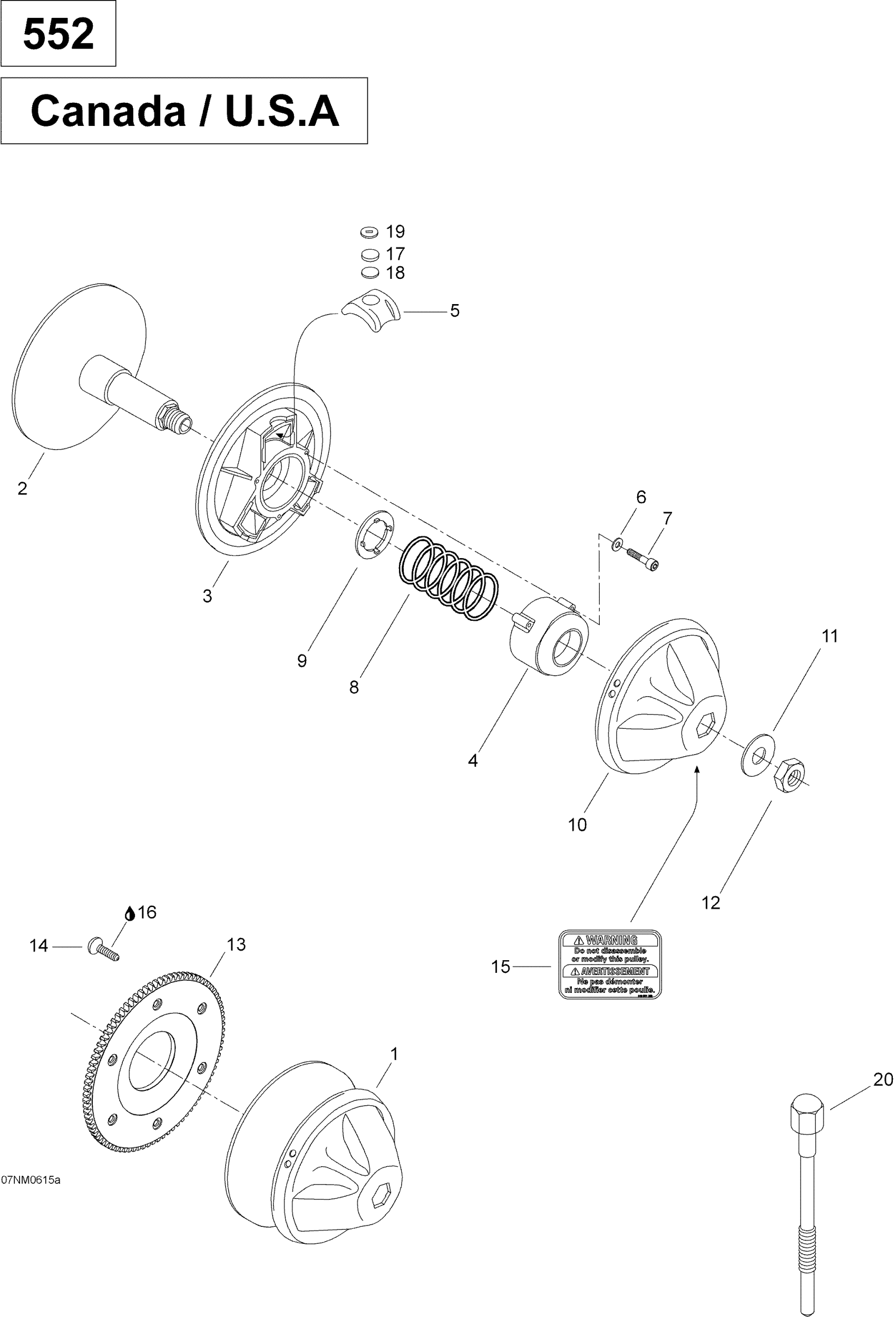 Ski-Doo Skandic SUV 550F, 2006 Drive Pulley 552, CAN-USA Diagram