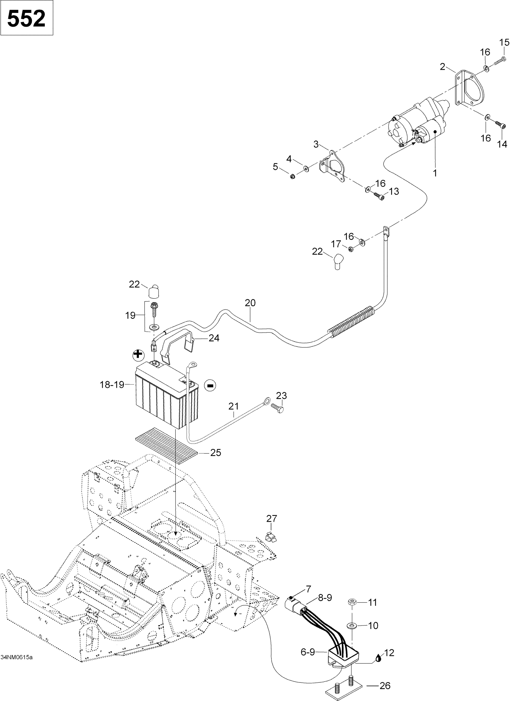 Ski-Doo Skandic SUV 550F, 2006 Battery And Starter 552 Diagram