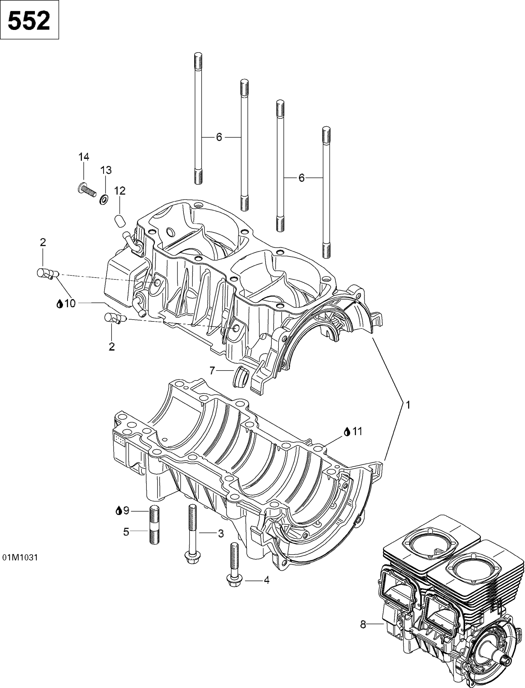 Ski-Doo Skandic SUV 550F, 2010 Crankcase Diagram
