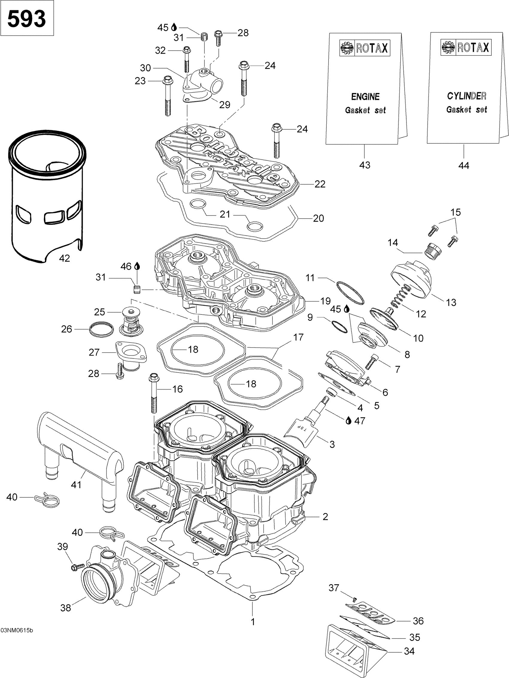 Ski-Doo Skandic SUV 600, 2006 Cylinder and Cylinder Head 593 Diagram