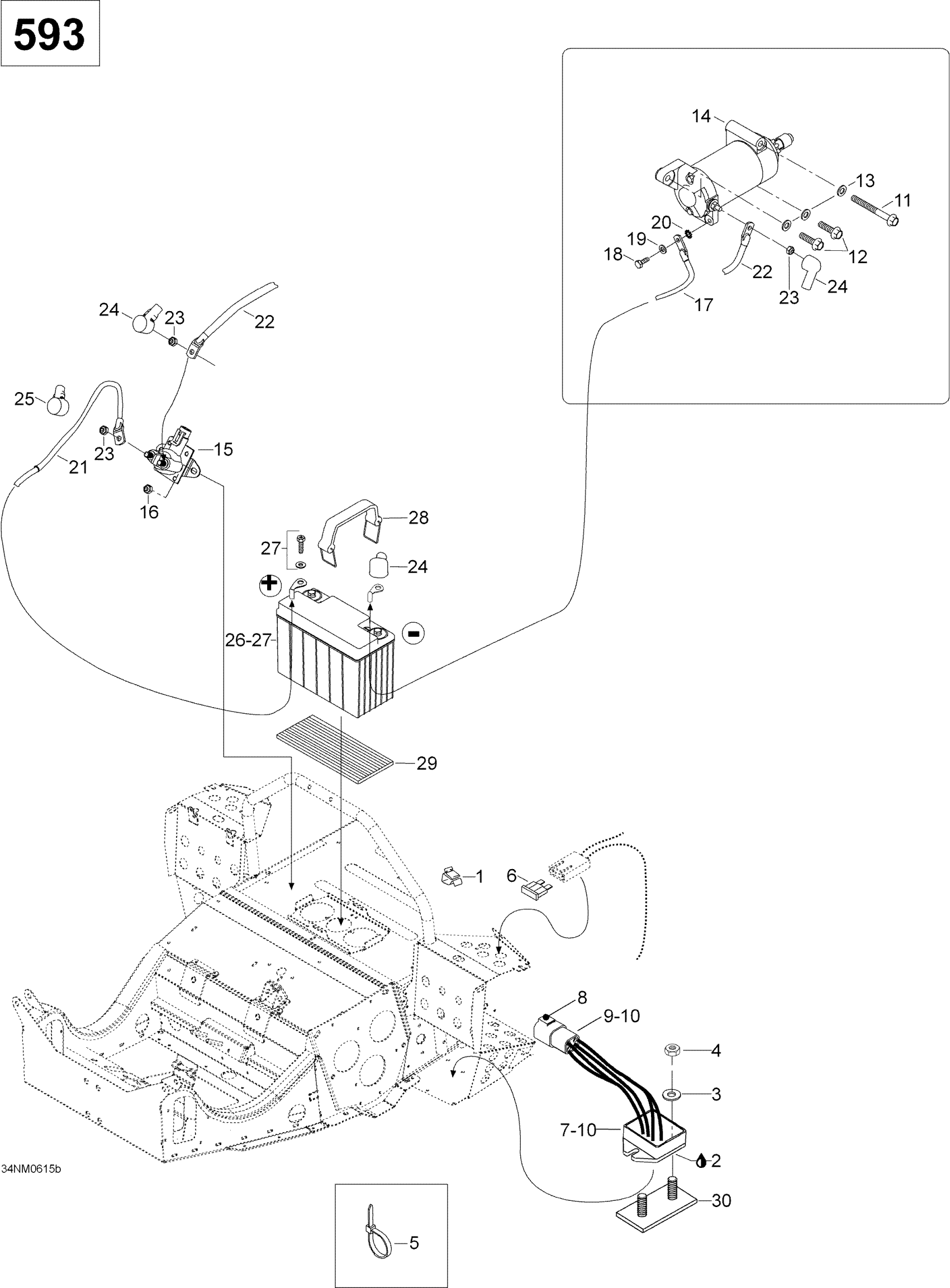 Ski-Doo Skandic SUV 600, 2006 Battery And Starter 593 Diagram