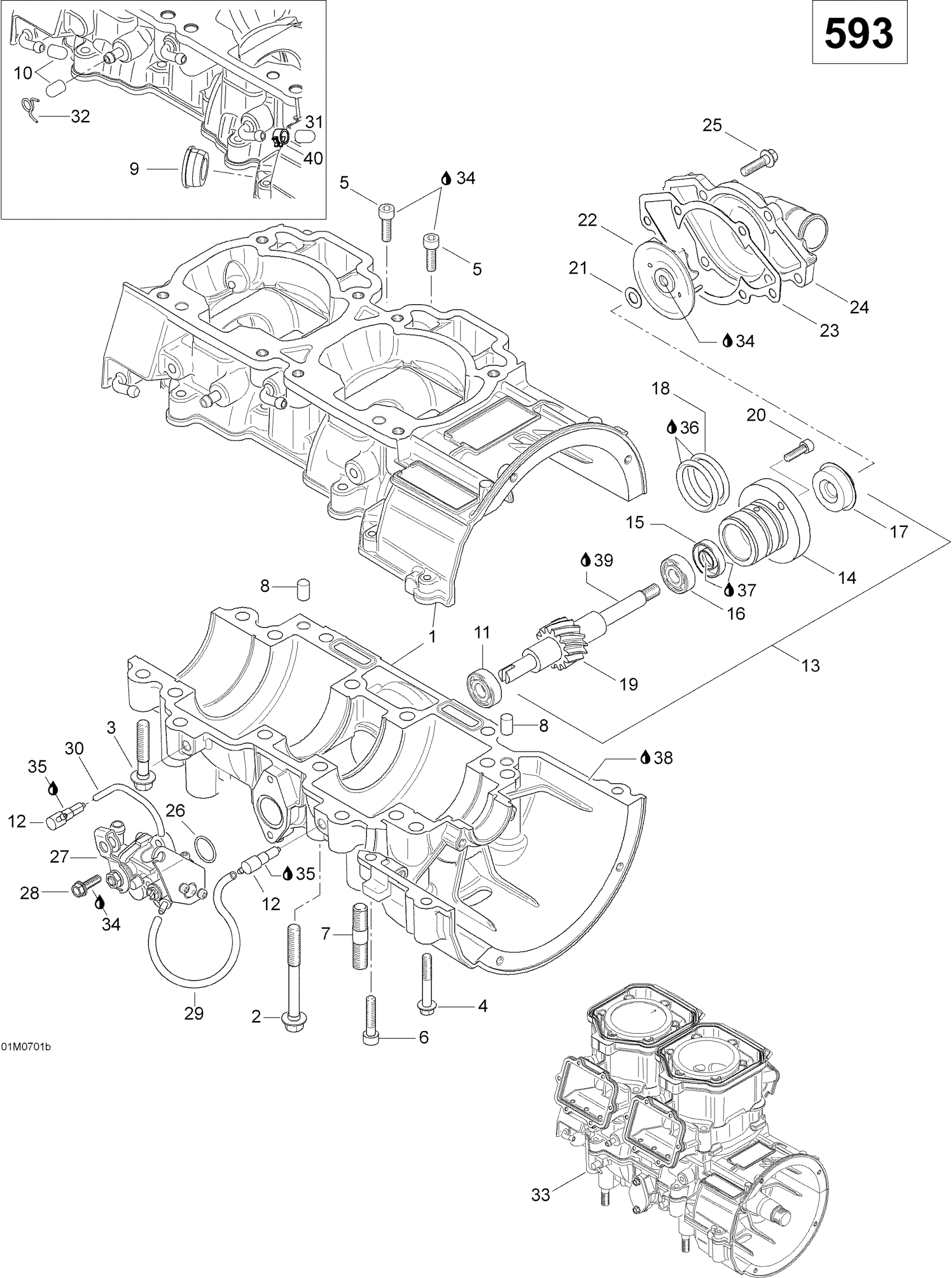 Crankcase, Water Pump And Oil Pump (600 SUV)