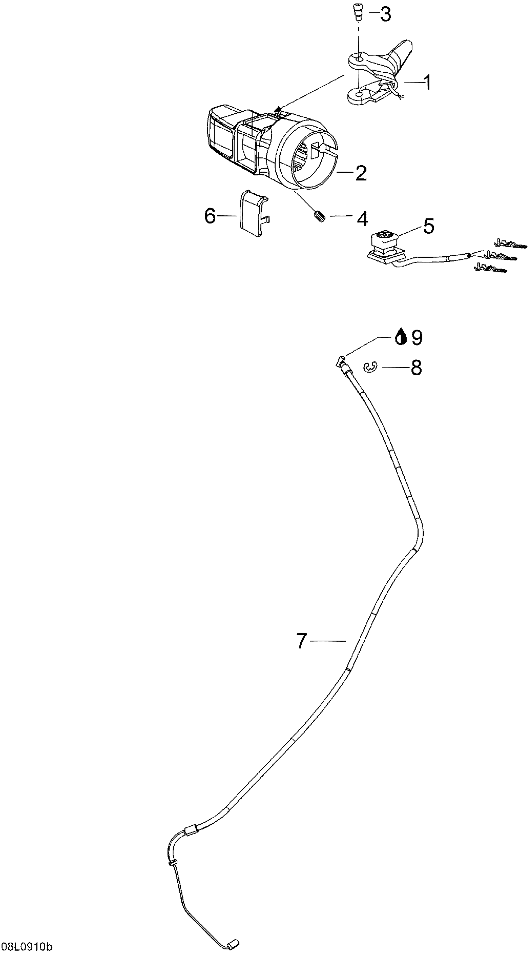 Ski-Doo Skandic SWT, 2009 Throttle Handle And Housing Diagram