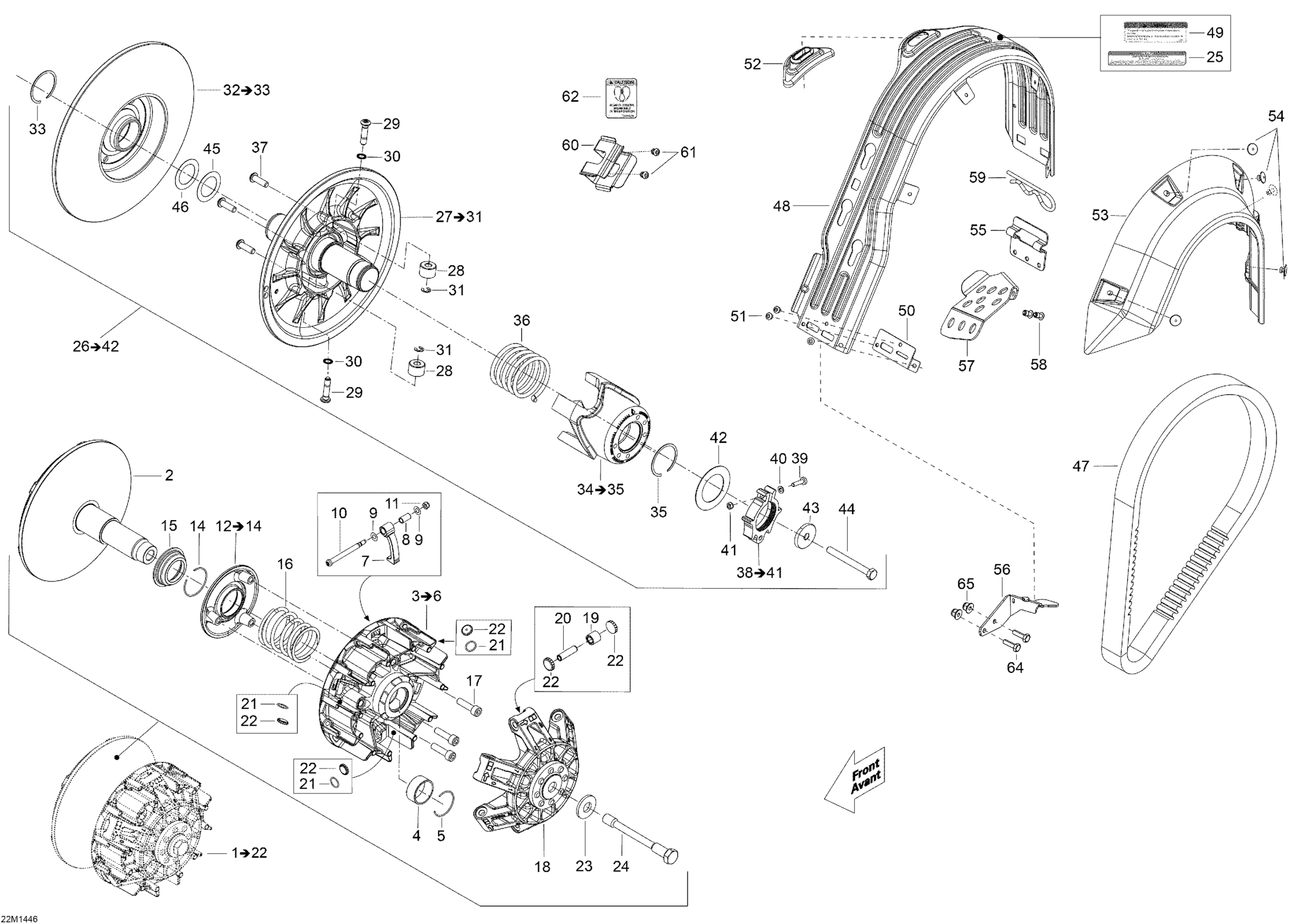 Ski-Doo Skandic SWT 600 ACE (4-strokes) XU, 2014 05- Pulley System Diagram