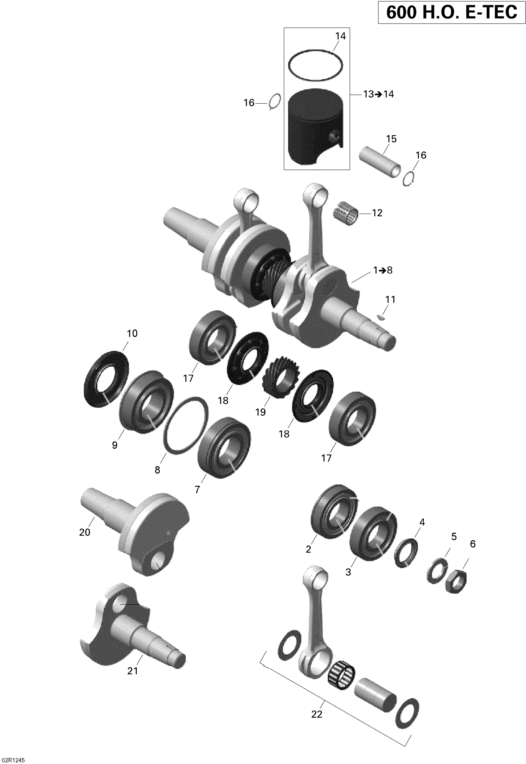 Ski-Doo Skandic SWT 600 H.O. E-TEC, 2012 Crankshaft And Pistons Diagram