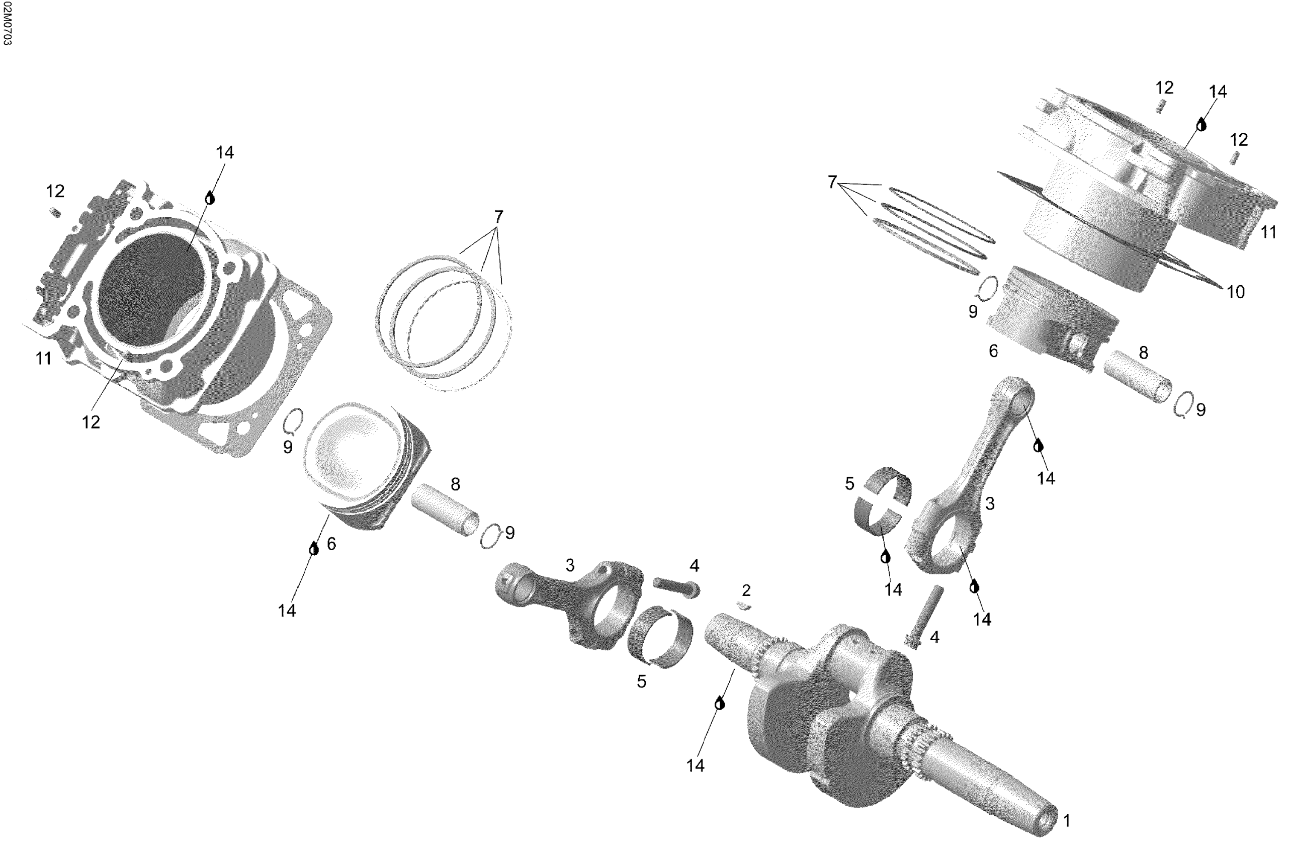 Ski-Doo Skandic SWT V-800, 2007 Crankshaft And Pistons Diagram