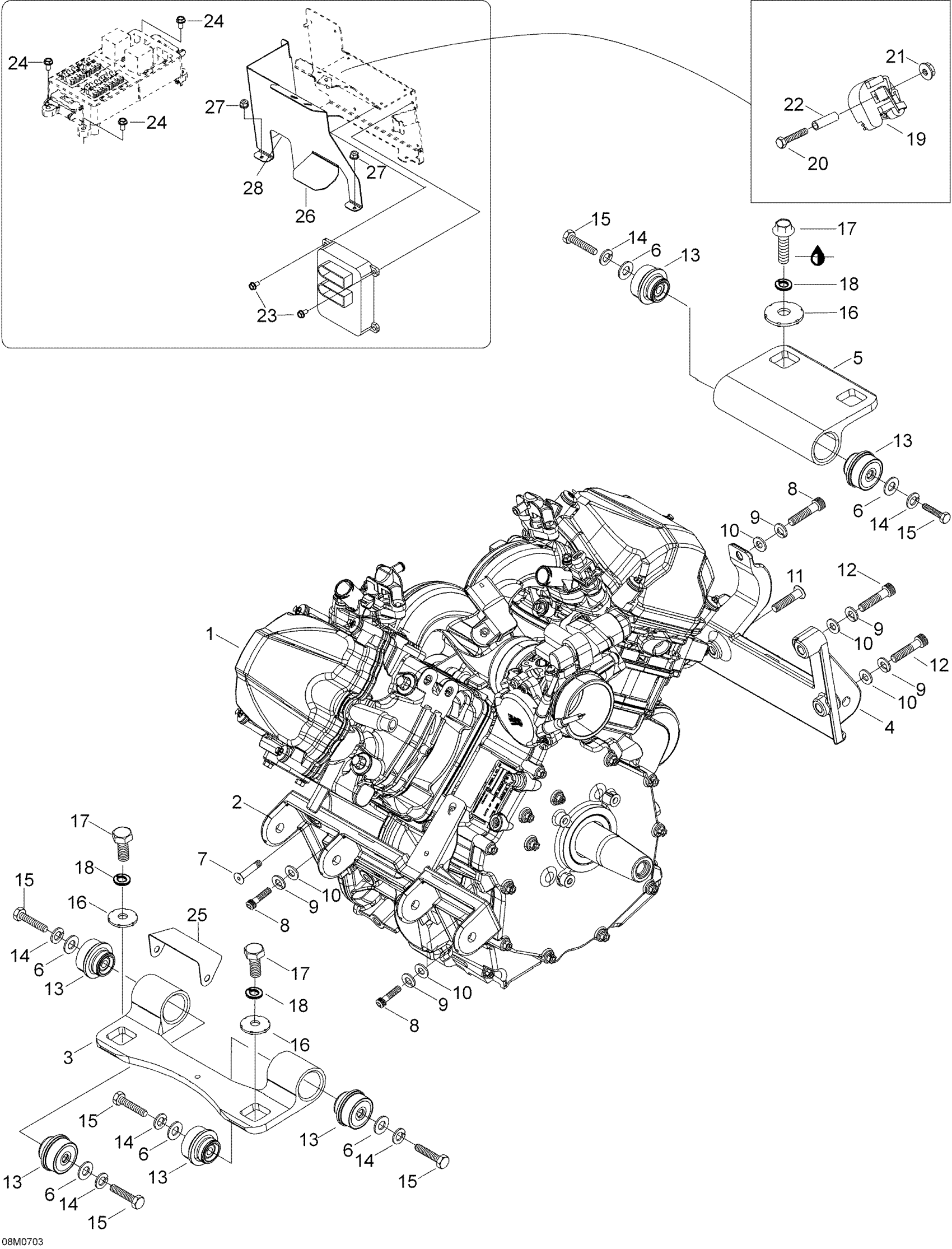 Ski-Doo Skandic SWT V-800, 2007 Engine And Engine Support Diagram