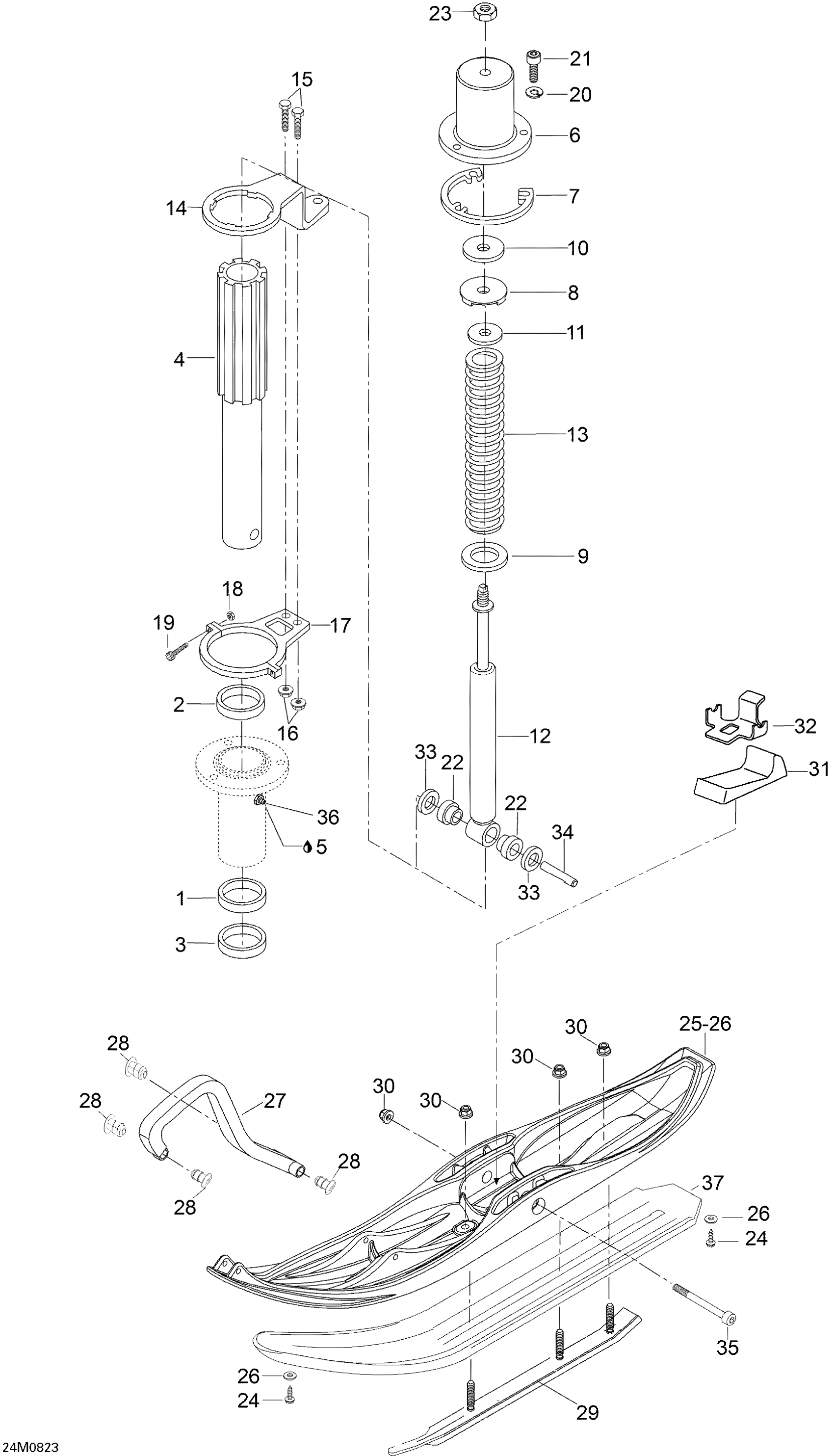 Ski-Doo Skandic SWT V-800, 2008 Front Suspension And Ski Diagram