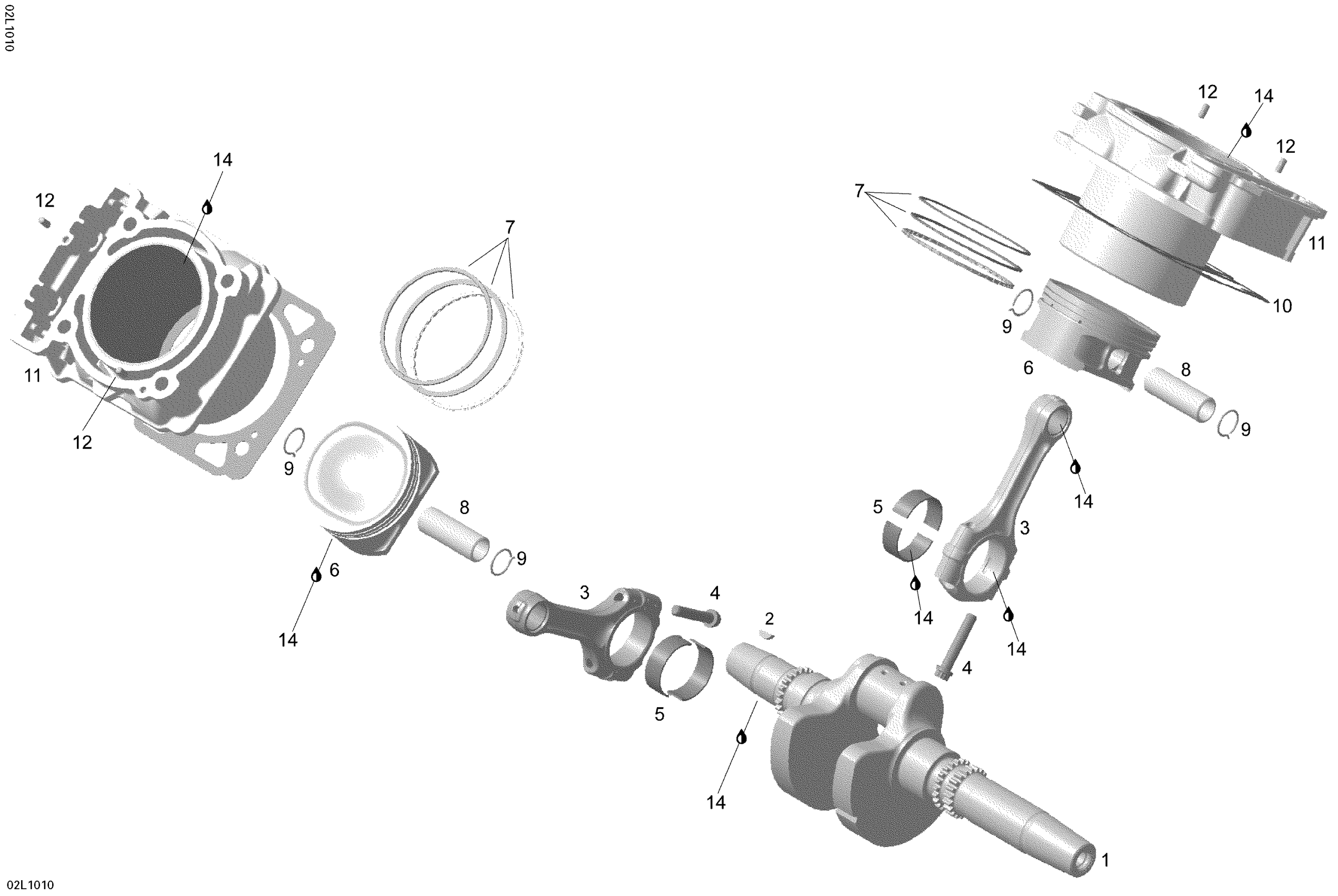 Ski-Doo Skandic SWT V800, 2010 Crankshaft And Pistons Diagram