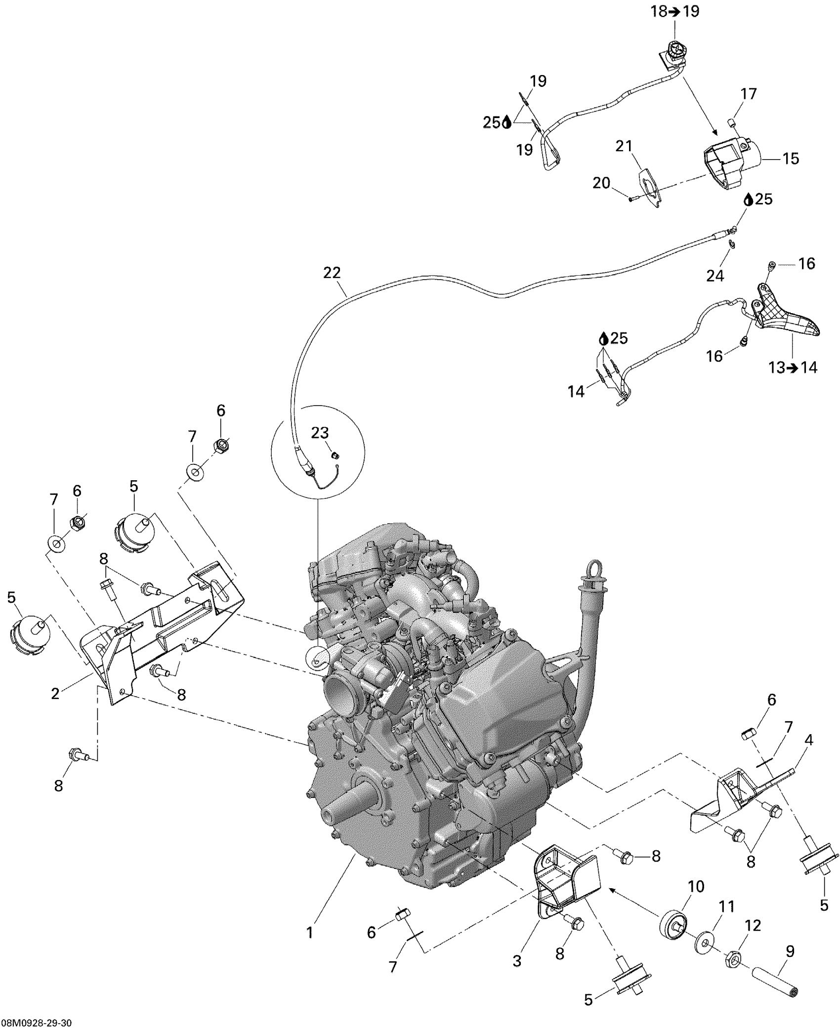 Ski-Doo Skandic Tundra LT V800 4-TEC, 2009 Engine And Engine Support Diagram