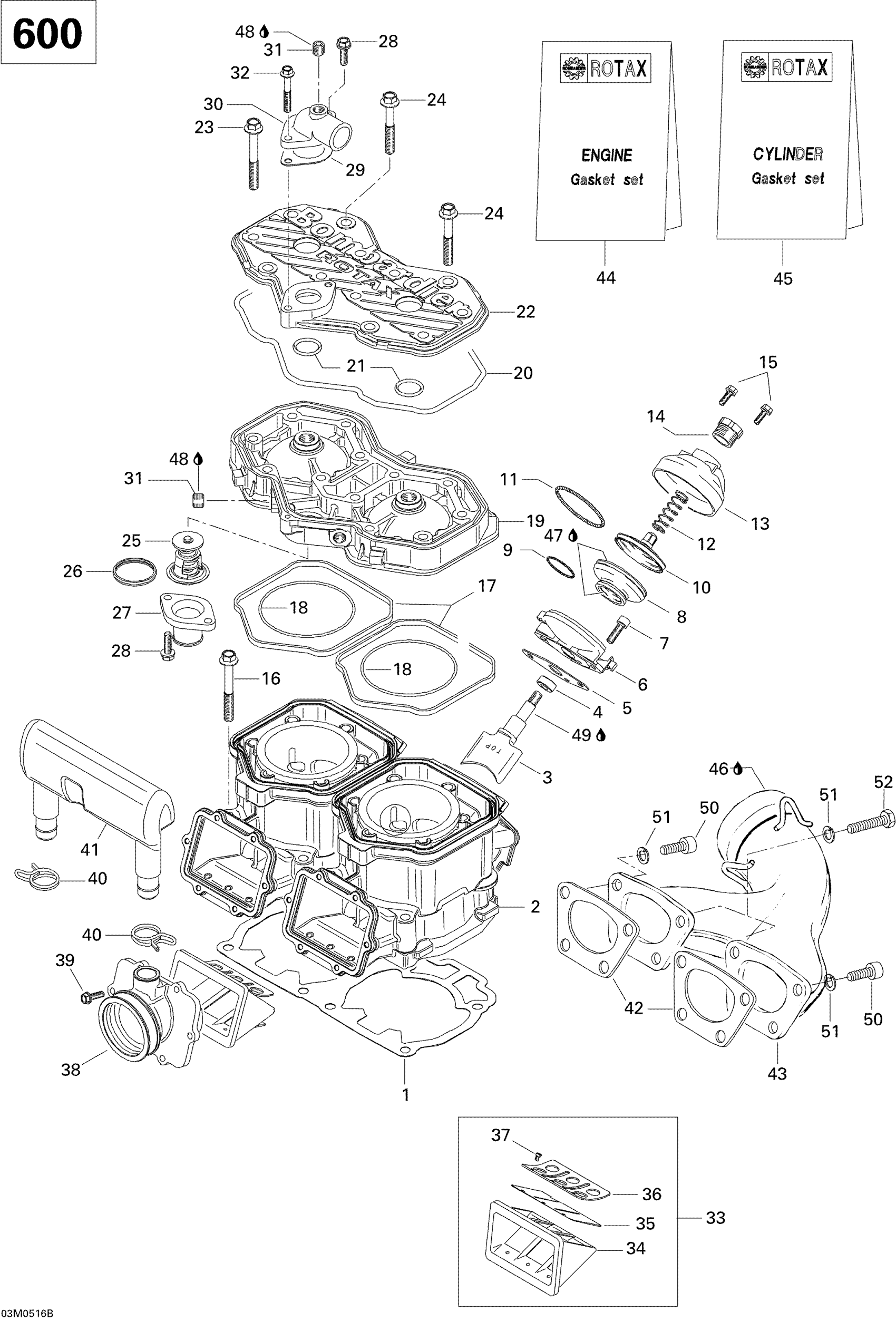 Cylinder, Exhaust Manifold And Reed Valve 600