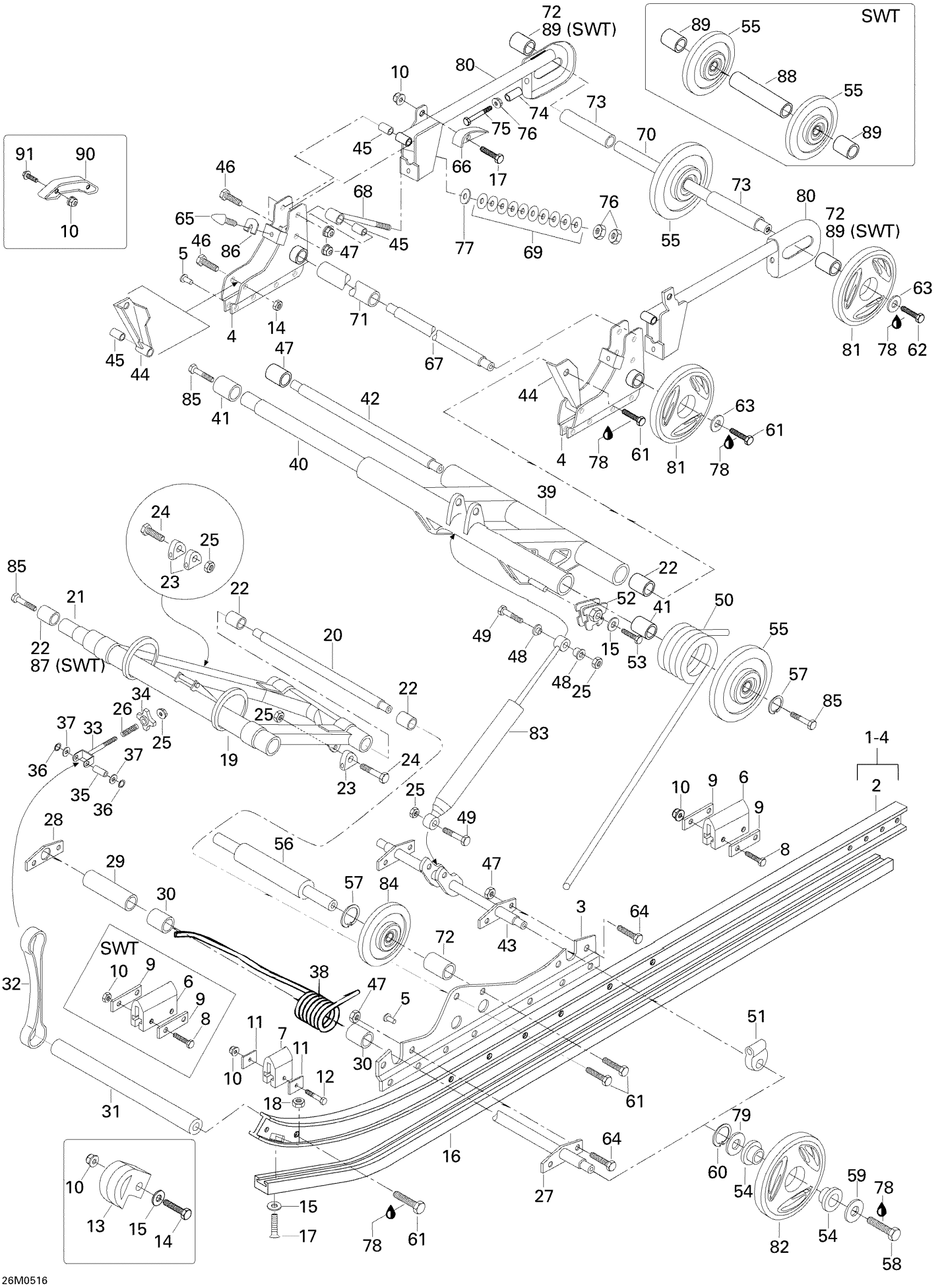 Ski-Doo Skandic WT 600, 2005 Rear Suspension 600WT Diagram