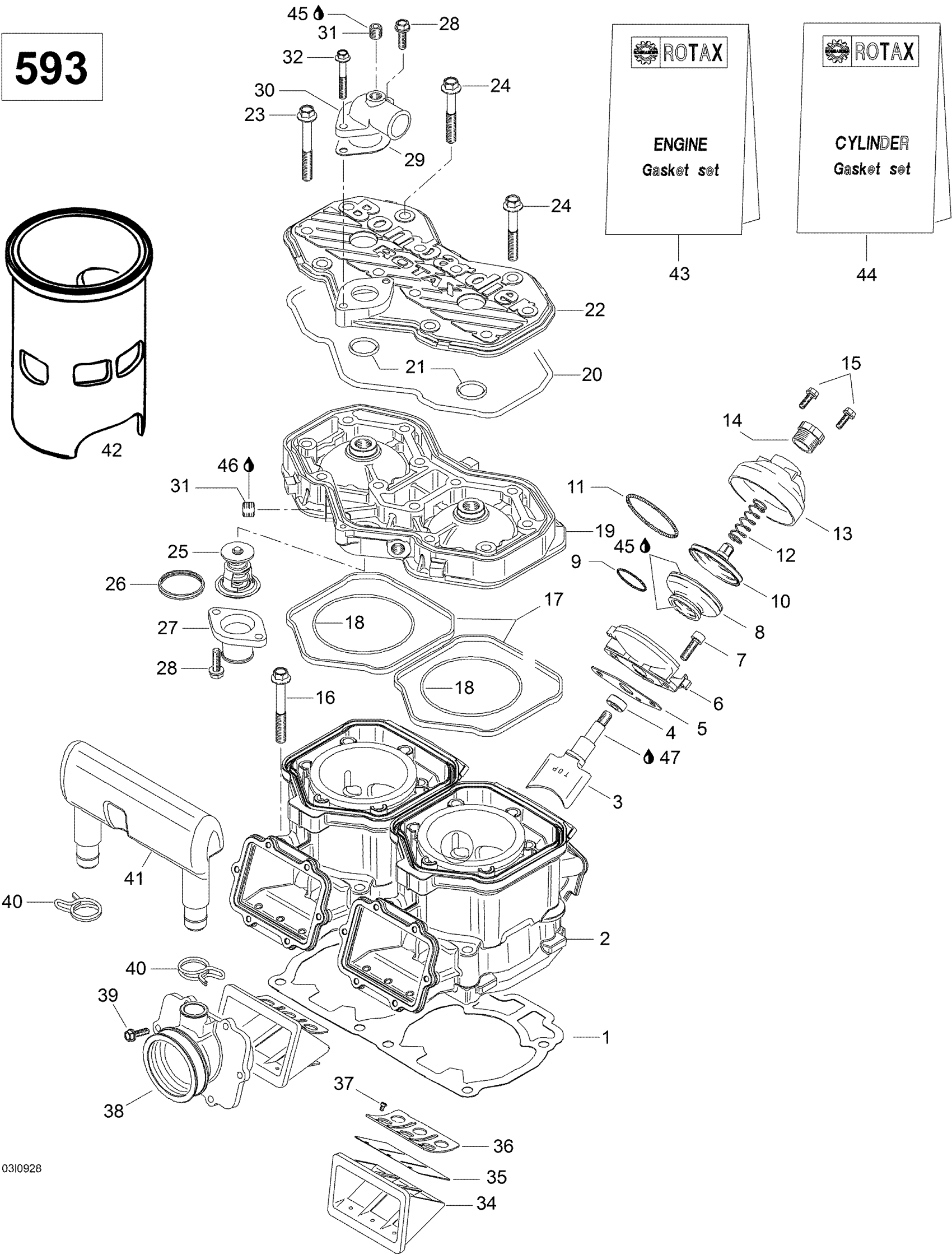 Ski-Doo Skandic WT 600, 2009 Cylinder and Cylinder Head Diagram