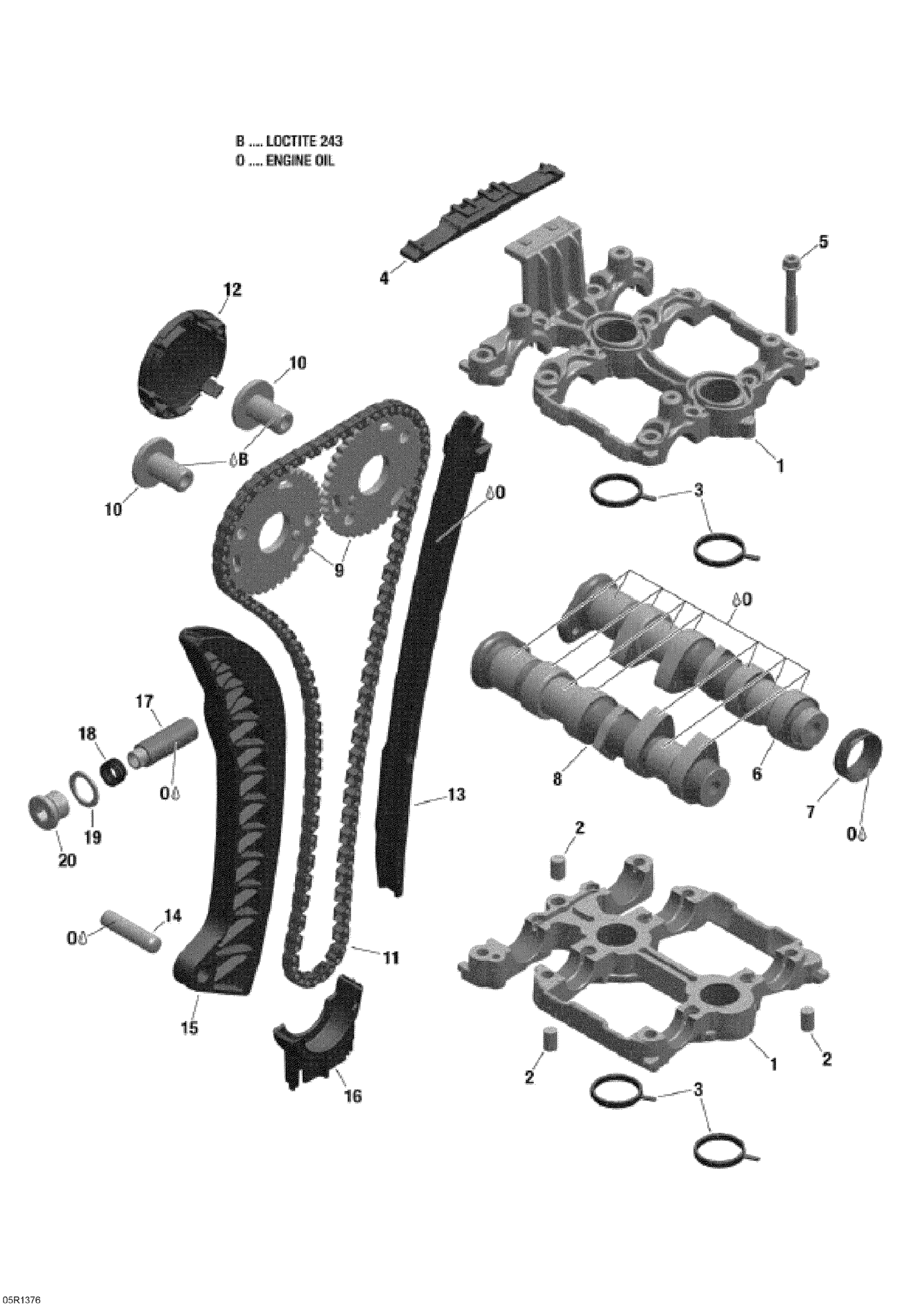 Ski-Doo Skandic WT 600 ACE (4-strokes) XU, 2013 01- Camshafts And Timing Chain Diagram