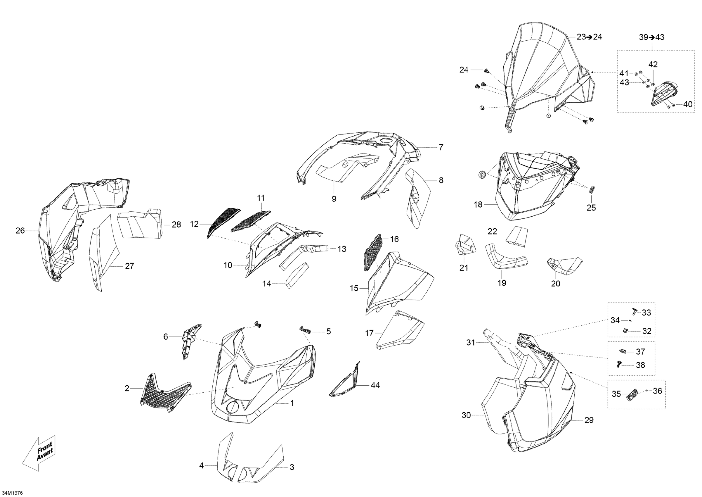 Ski-Doo Skandic WT 600 ACE (4-strokes) XU, 2013 Hood, Windshield And Console Diagram