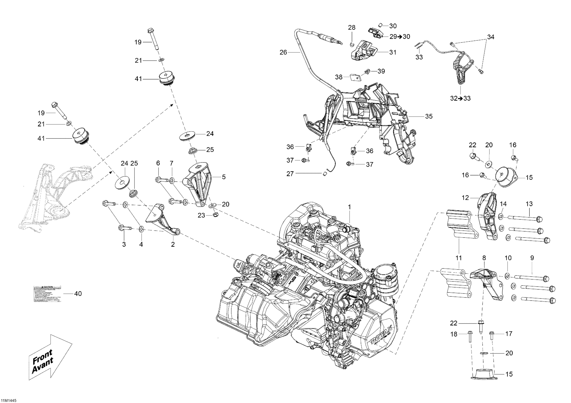 Ski-Doo Skandic WT 600 ACE (4-strokes) XU, 2014 01- Engine And Engine Support Diagram