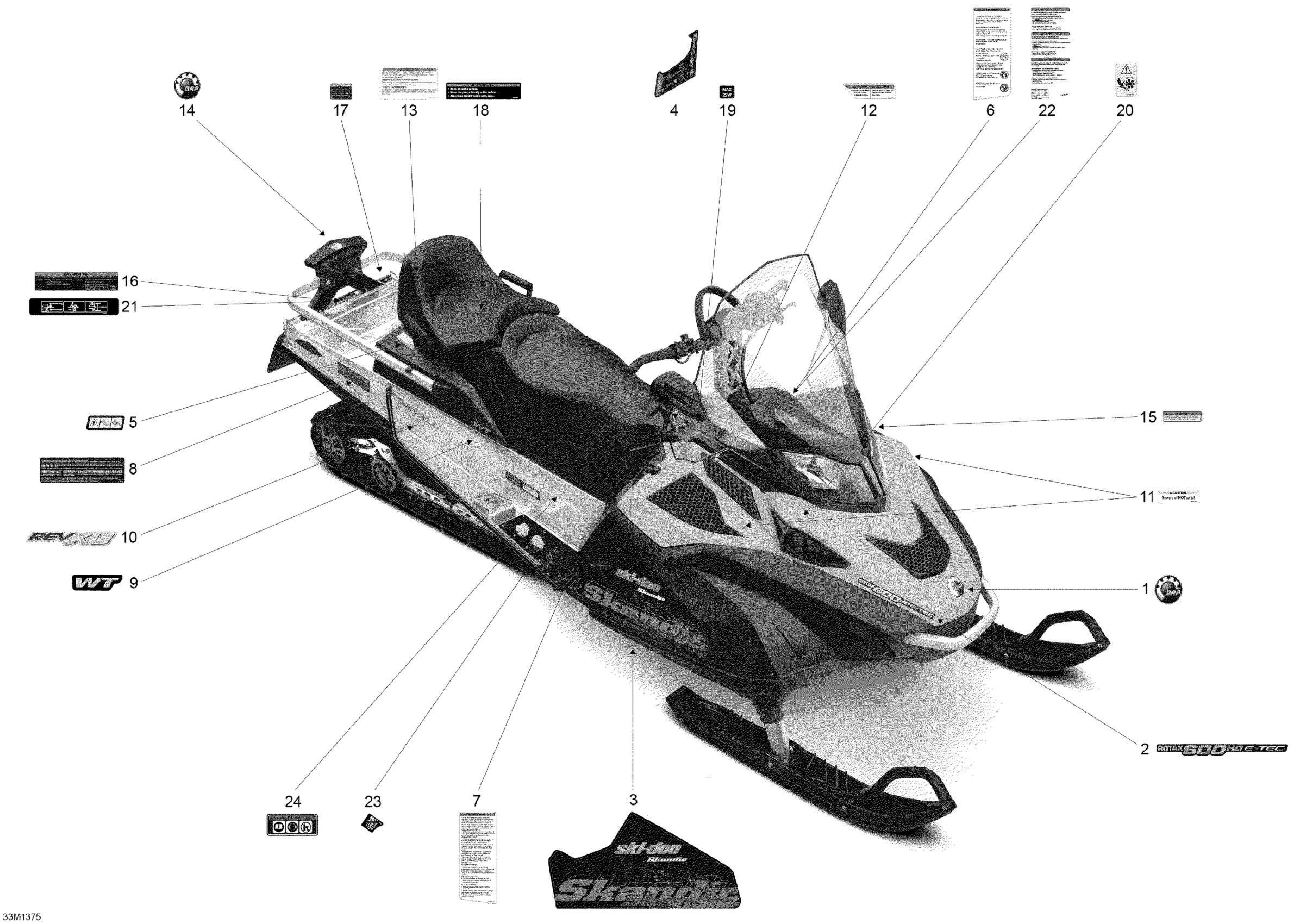 Ski-Doo Skandic WT 600HOETEC XU, 2013 09- Decals Diagram