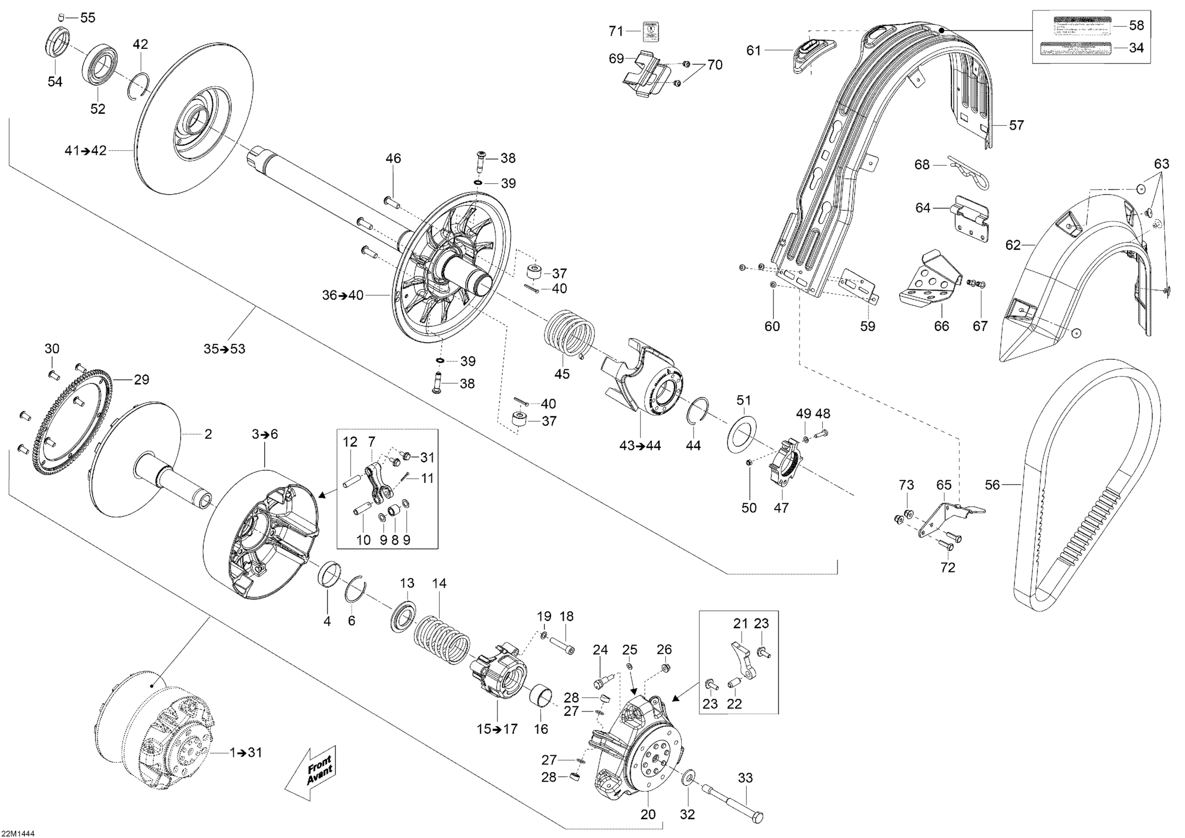 Ski-Doo Skandic WT 600HOETEC XU, 2014 05- Pulley System Diagram