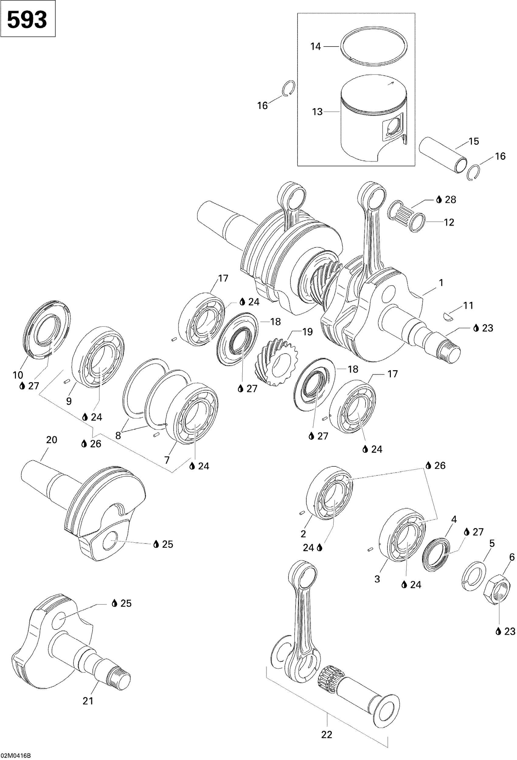 Ski-Doo Skandic WTLC 600, 2004 Crankshaft And Pistons (593) Diagram