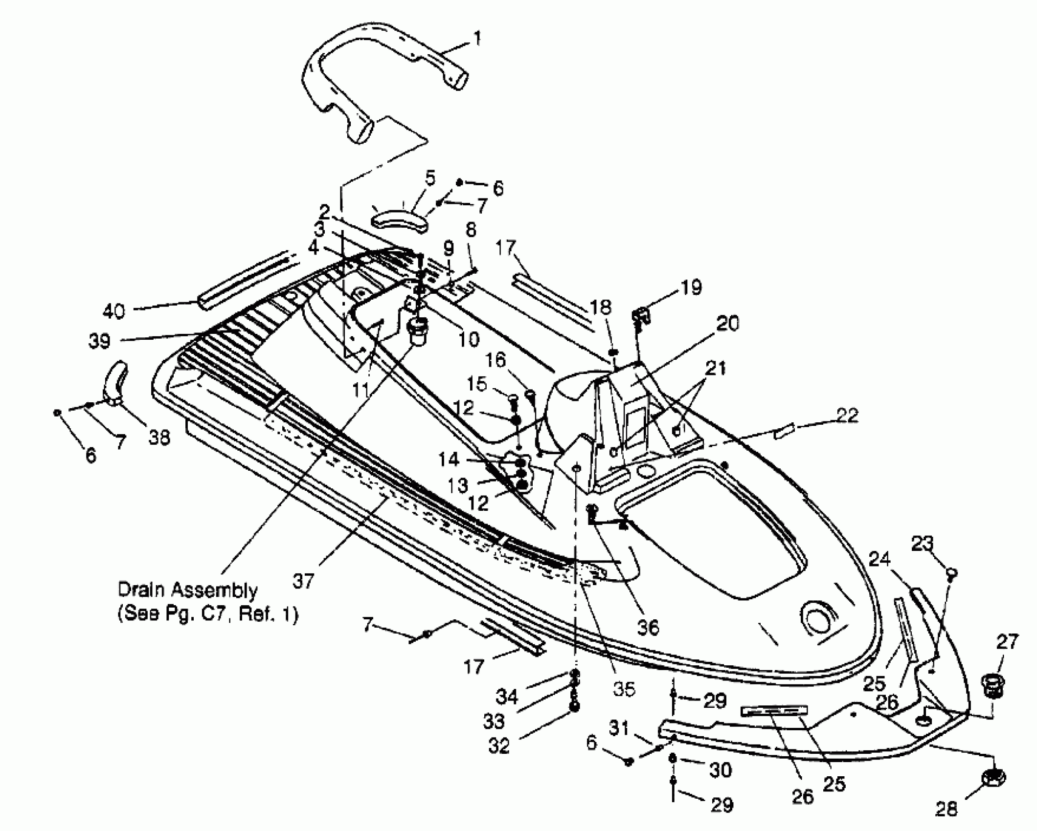 Polaris SL 650 - B954058 HULL and BODY ASSEMBLY SL 650 B954058 (4930483048A005) Diagram